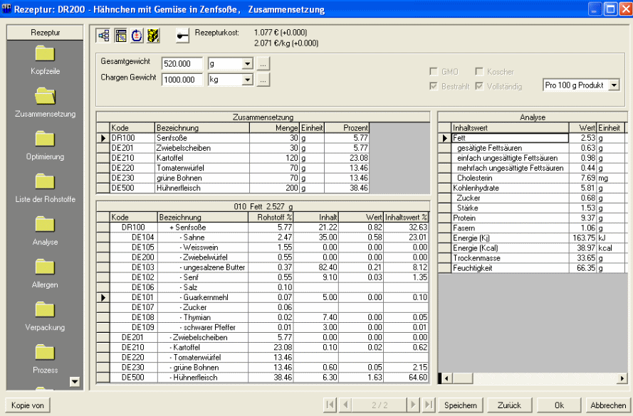 BESTMIX® Food ist ein Softwaretool zur Verwaltung von Rezepten und Zutaten und zur Erstellen von Produktspezifikationen. Es ist eine zentrale Datenbank für die Abteilungen F&E und QM die auch als Ergänzung zu Warenwirtschaftssystemen dienen kann, wobei Schnittstellen zu allen gängigen ERP-Systemen implementierbar sind.