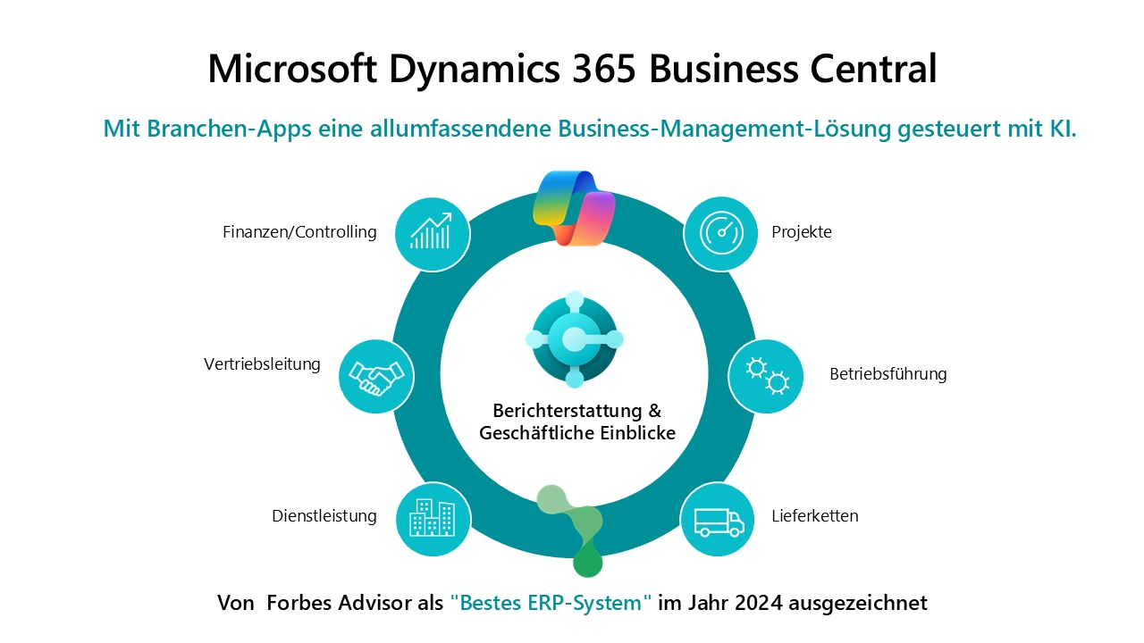 Unsere Lösung basiert auf bewährten Standardprozessen und bietet gleichzeitig die Flexibilität individueller Anpassungen – ergänzt durch die neuesten Microsoft KI-Technologien. Mit Microsoft Copilot, direkt integriert in Dynamics 365 Business Central, profitieren Sie von: