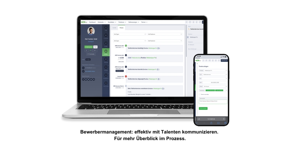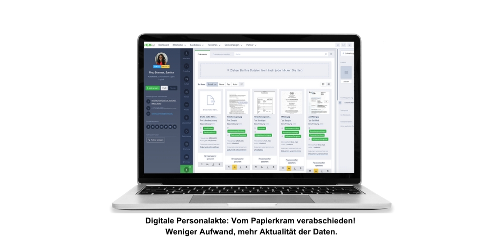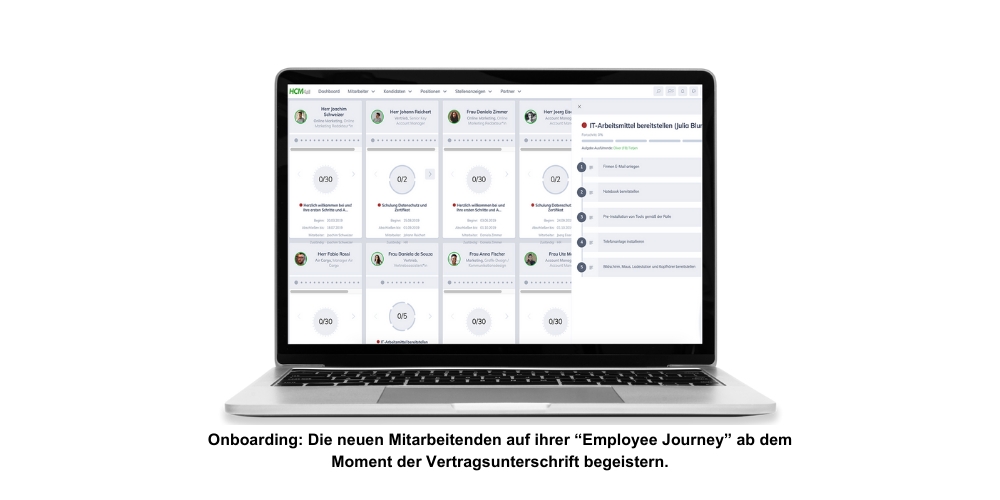 Unsere leicht verständliche und intuitive Software deckt den gesamten Personalprozess ab - von klar definierten Anforderungen, Stellenanzeigen, der Karriereseite und der Bewerberkommunikation über den Workflow, Talentmanagement, das Kompetenzmanagement, die digitale Personalakte, das Organisationsmanagement, das Onboarding und die Analytics bis hin zum Blended Learning.