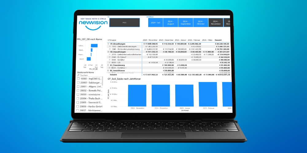 newvision ist ein führender Anbieter innovativer Business Software auf Basis von Microsoft-Technologie. Der digitale Vorreiter optimiert seit 20+ Jahren die Geschäftsprozesse seiner Kunden – effizient, smart und zukunftssicher. Mit Standorten in Wels, Wien und Stuttgart sowie einem flexiblen Remote-Service betreuen 50+ Teammitglieder 300+ zufriedene Kunden in Deutschland, Österreich und der Schweiz.
