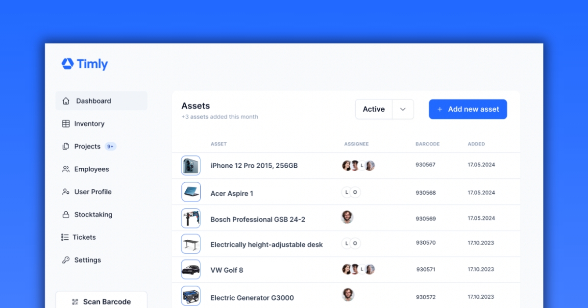 Wir stellen Ihnen Timly vor, eine hochmoderne, cloud-basierte Software zur Anlagenverfolgung, die Unternehmen bei der nahtlosen Überwachung und Optimierung ihrer Inventarisierungsprozesse unterstützt. Unsere innovative Plattform bietet eine Vielzahl von Vorteilen, die darauf abzielen, Ihre betriebliche Effizienz zu steigern: