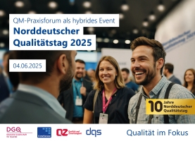 Der Norddeutsche Qualitätstag ist eine Kooperation des Aachener Entwicklers von QM-Software ConSense GmbH, der Deutschen Gesellschaft für Qualität e. V. (DGQ), der Deutschen Gesellschaft zur Zertifizierung von Managementsystemen (DQS) und der Fachzeitschrift QZ Qualität und Zuverlässigkeit. Das Event rund um zukunftsgerichtetes Qualitätsmanagement findet am 4. Juni 2025 im FOM Hochschulzentrum Hamburg sowie online via Zoom statt. Infos zur Anmeldung und zum vollständigen Programm des 10. Norddeutschen Qualitätstags gibt es hier.