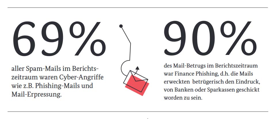 Prozentanteile Spam-Mails und Mail-Betrug, Quelle: BSI Lagebericht zur IT-Sicherheit in Deutschland 2022