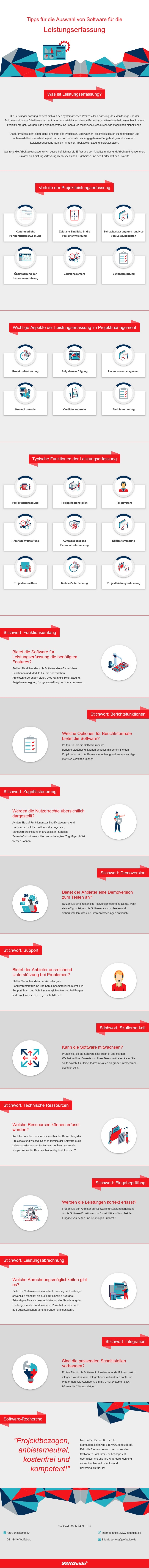 In dieser Infografik zum Thema "Software für die Leistungserfassung" haben wir Ihnen ausgesuchte Tipps für die Software-Auswahl sowie wichtige Module und Funktionen von Software für die Leistungserfassung zusammengestellt. Diese Tipps und Funktionen stellen nur einen Auszug aus den umfangreicheren Informationen unserer Software-Tipps für die Auswahl von Leistungserfassungs Software dar.