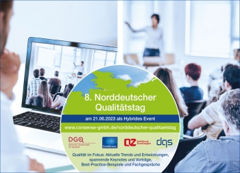 Aachen, 15. Mai 2022 - Der 8. Norddeutsche Qualitätstag blickt am 21. Juni 2023 auf die wichtigsten und interessantesten Entwicklungen im Qualitätsmanagement und Prozessmanagement. Das Praxisforum für Qualitätsexperten und -expertinnen findet in hybrider Form – online und vor Ort in Hamburg – statt. Veranstalter sind der Aachener Entwickler von QM-Software ConSense GmbH, die Deutsche Gesellschaft für Qualität e. V. (DGQ), die Deutsche Gesellschaft zur Zertifizierung von Managementsystemen (DQS) und die Fachzeitschrift QZ Qualität und Zuverlässigkeit.