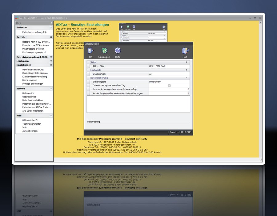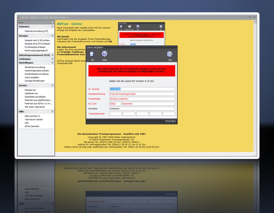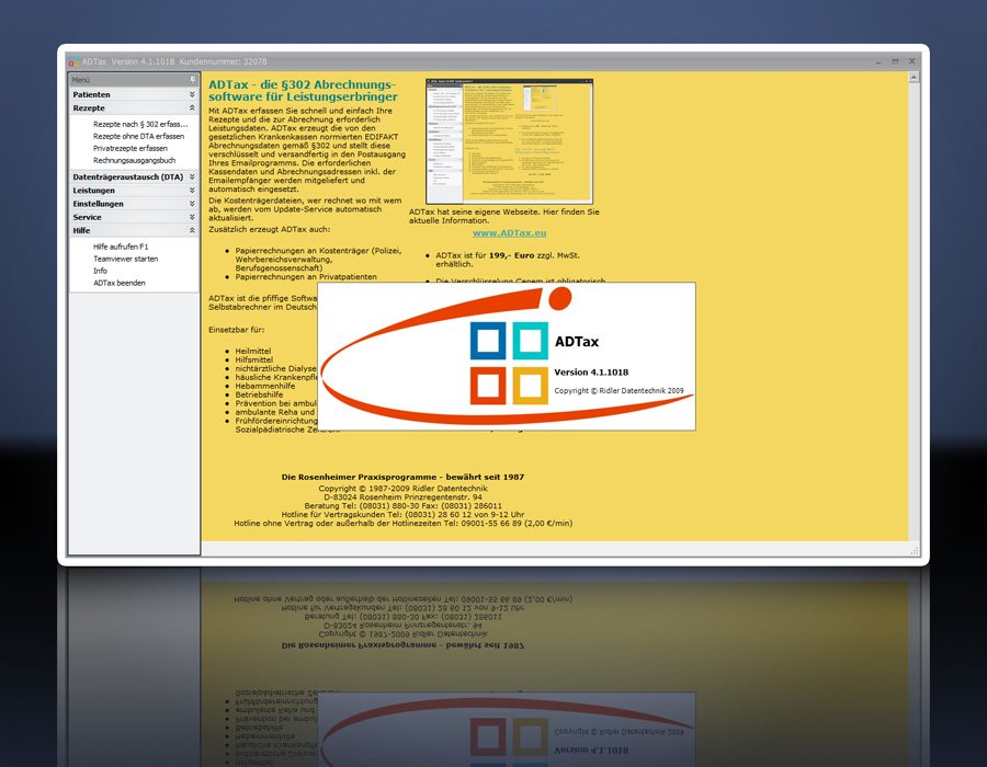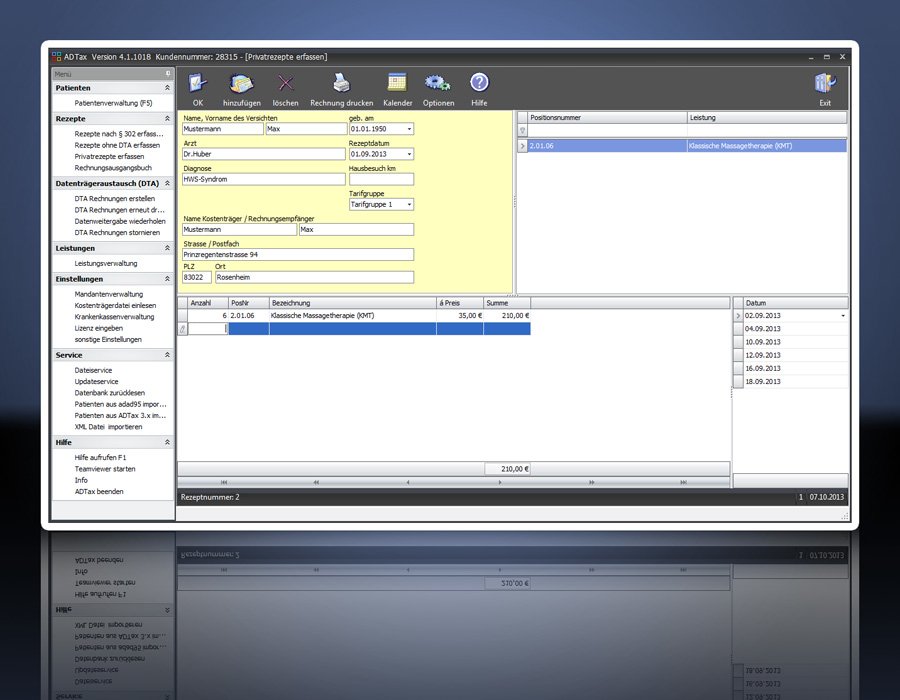 ADTax erzeugt auch Privatrechnungen in Papierform. Die Verordnungs- und Leistungsdaten werden im Hintergrund gespeichert und stehen bei künftigen Verordnungen zur Verfügung. Soll ADTax nur für Privatrechnungen (Kauf 69.- € netto) eingesetzt werden ist kein Software Servicevertrag erforderlich.