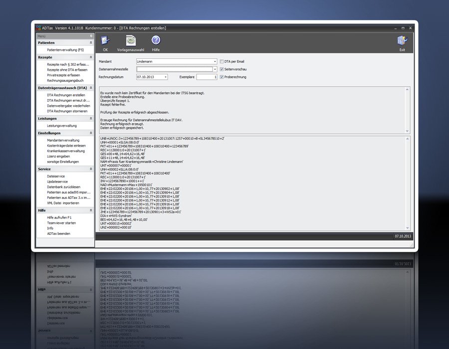 ADTax erzeugt die einzelnen EDIFAKT Segmente bereits bei der Dateneingabe. Wird die Abrechnung gestartet, werden alle noch nicht abgerechneten Verordnungen gemäß Kostenträgerdaten und eigenem Standort den Abrechnungspartnern zugeordnet.