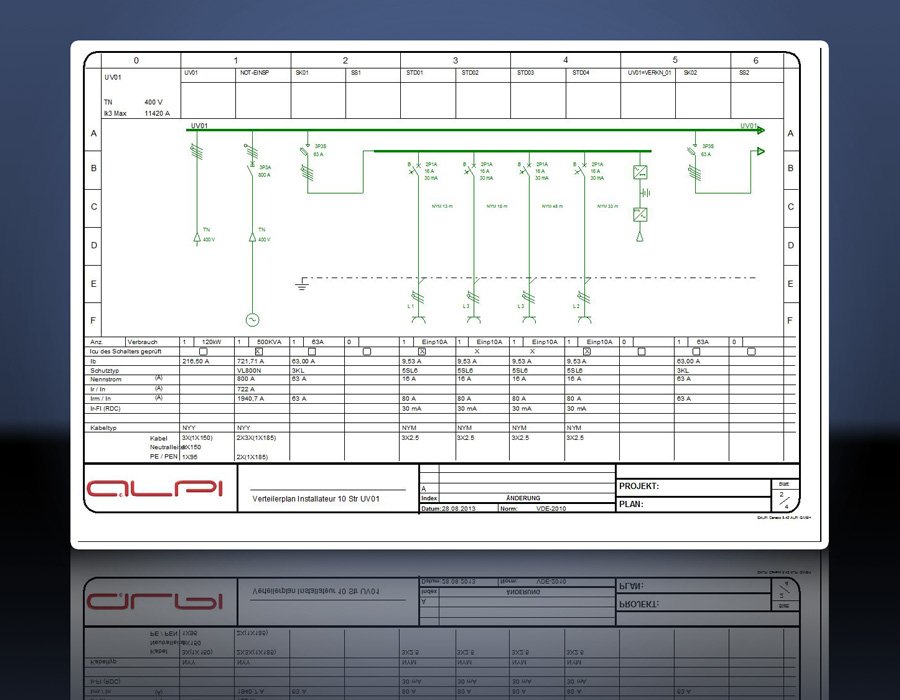 Sie wählen den für Ihren Bedarf passenden Eingabemodus (Tabellenkalkulation, Gesamt-Einliniendiagramm, Verteiler-Einliniendiagramm, usw.). Die Software aktualisiert automatisch die Stromlaufpläne und Informationen.