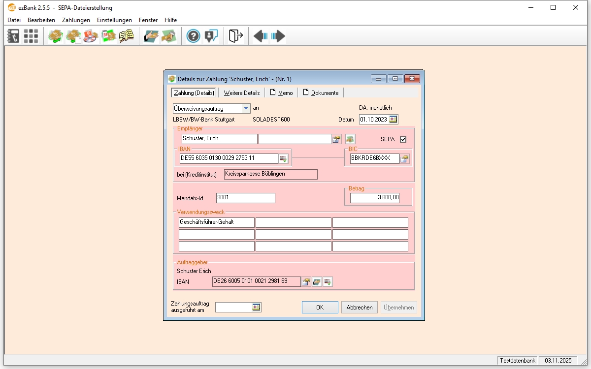 Erfassen von Zahlungen und Erstellen der SEPA-Dateien für den elektronischen Zahlungsverkehr mit der Bank.