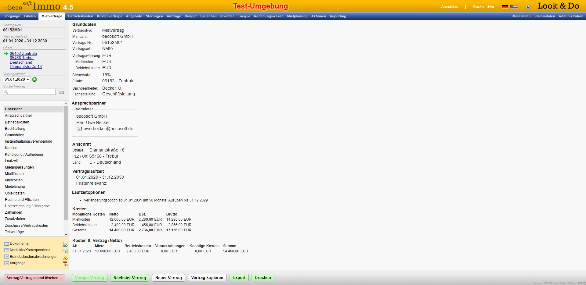 :becosoft-Immo wurde speziell dafür entwickelt, Ihre Mietflächen professionell zu verwalten und zu bewirtschaften. Dabei erhalten Sie einen ständigen Überblick über alle wichtigen Termine und Fristen (z.B. Kündigungs- oder Verlängerungsoptionen) und decken durch die umfangreichen Reporting- und Vergleichsmöglichkeiten Ihre Einsparungspotentiale zuverlässig und umfassend auf.