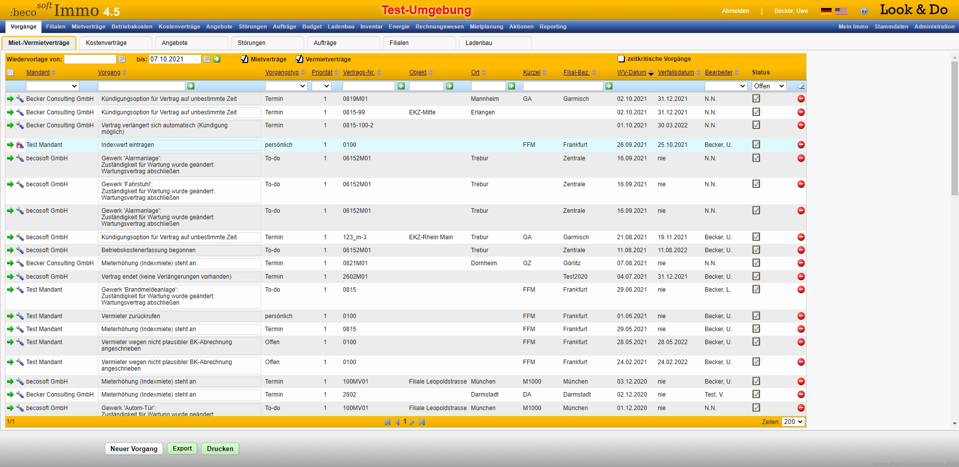 Sie können von :becosoft-Immo eine zuverlässige Überwachung von Fristen, Terminen, Betriebskostenprüfungen und auch die Abarbeitung von Störungen und Mängeln aller Prozesse erwarten. :becosoft-Immo unterstützt Sie zudem in der Behebung aller Störfaktoren, die Ihre innerbetrieblichen Prozesse belasten.