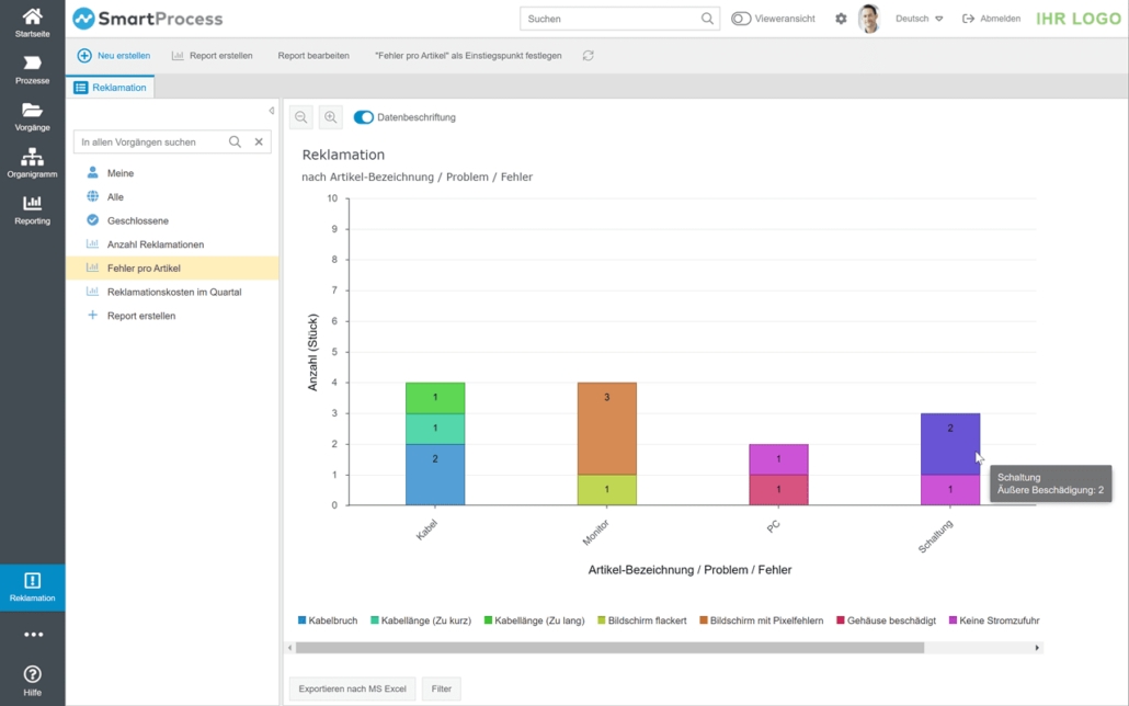 Mit SmartProcess erfassen Sie Reklamationen und Beschwerden effizient und steuern die Bearbeitung vollautomatisch über intelligente Workflows. Die Software unterstützt Sie bei optimaler Erreichbarkeit, kompetenter Bearbeitung, flexibler Aufgabenverteilung und zuverlässiger Termineinhaltung.