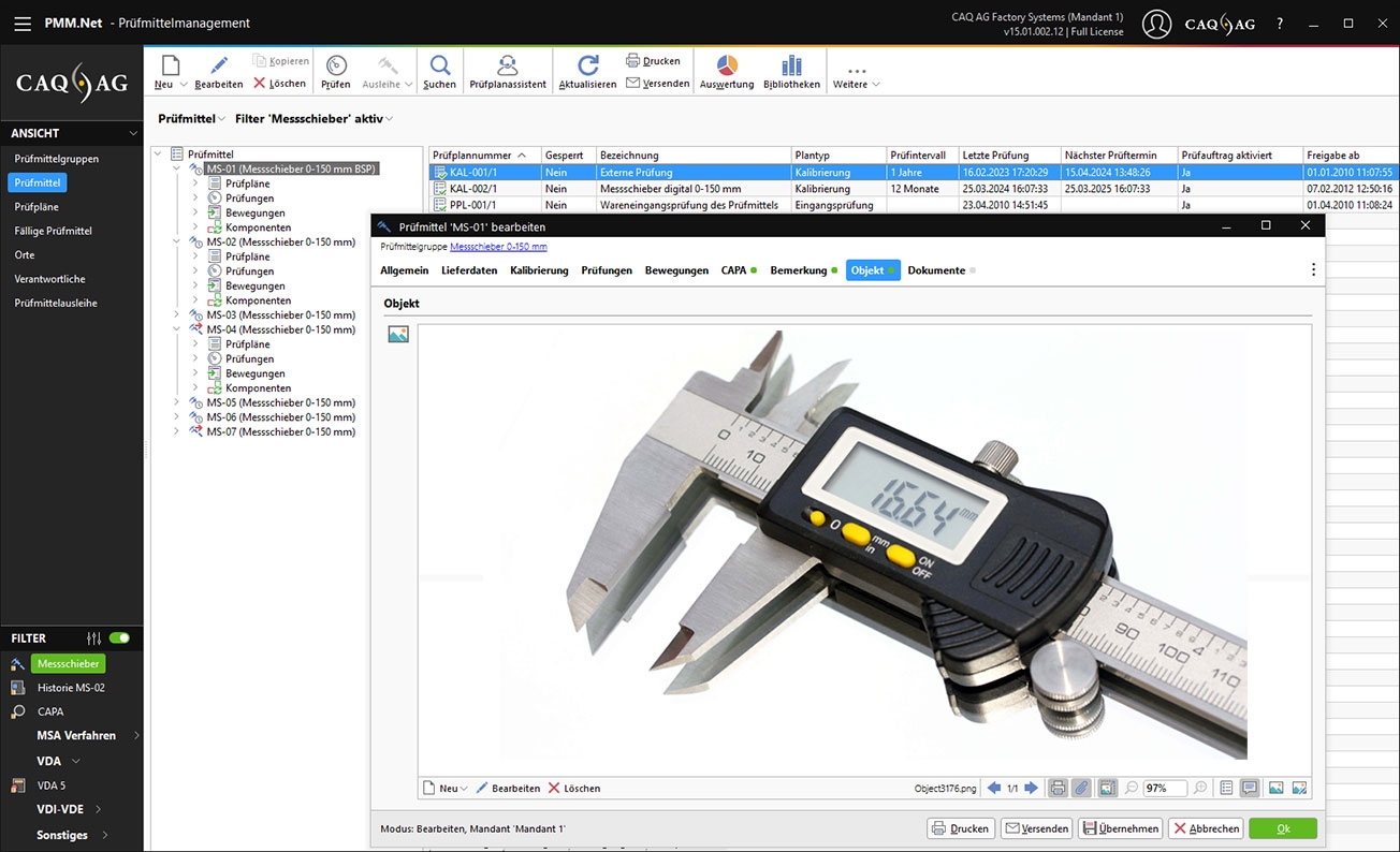 Ja, unser Prüfmittelmanagement kann über das Modulkonzept wunderbar integriert werden, entweder direkt zu Beginn oder auch jederzeit später. Das Modul PMM.Net ist eine leistungsstarke Software, die Sie bei der Prüfmittelverwaltung, Prüfmittelüberwachung, Prüfmittelfähigkeitsuntersuchung und der Kalibrierung Ihrer Prüfmittel unterstützt. Vom einfachen Messschieber bis hin zu komplexesten, mehrdimensionalen Messmitteln, von der Messuhr bis zur spezialisierten und prozessintegrierten Eigenentwicklung – PMM.Net garantiert Prüfmittelmanagement mit geringstem Aufwand.