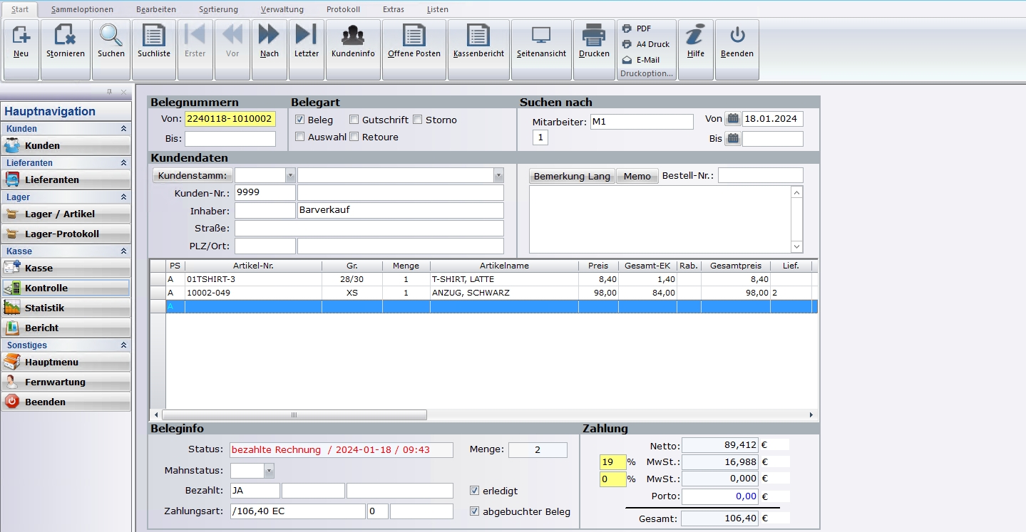 Die Benutzeroberfläche der Software ermöglicht die Bedienung per Tastatur (Funktionstasten, Enter-Taste), Maus oder Touchscreen. Dadurch bleibt der Überblick erhalten und die Bedienung ist benutzerfreundlich. Selbst unerfahrenes Personal kann nach einer kurzen Einführung die Software und die Kasse sicher bedienen.