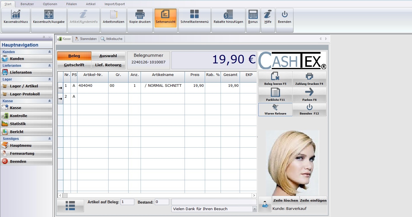 CASHTEX PROFI ist eine umfassende Warenwirtschaft Software, speziell entwickelt für Friseursalons, Friseurstudios, Kosmetiksalons und den Kosmetika Einzelhandel. Unser System bietet ein leistungsstarkes Kassensystem sowie alle Standardfunktionen, die Sie von einer erstklassigen Kassenlösung und Warenwirtschaft erwarten.