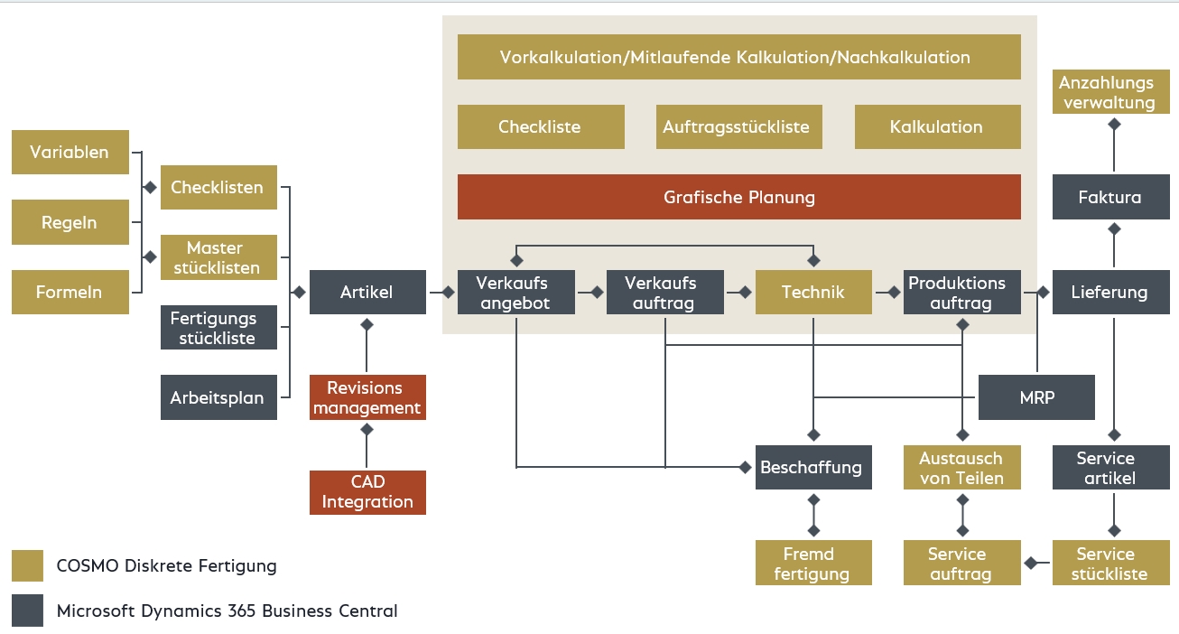 COSMO Discrete Manufacturing basiert auf Microsoft Dynamics 365 Business Central. Sie können sämtliche unternehmerischen Prozesse zur auftragsbezogenen Produktionsplanung und -steuerung mit der Software abbilden.