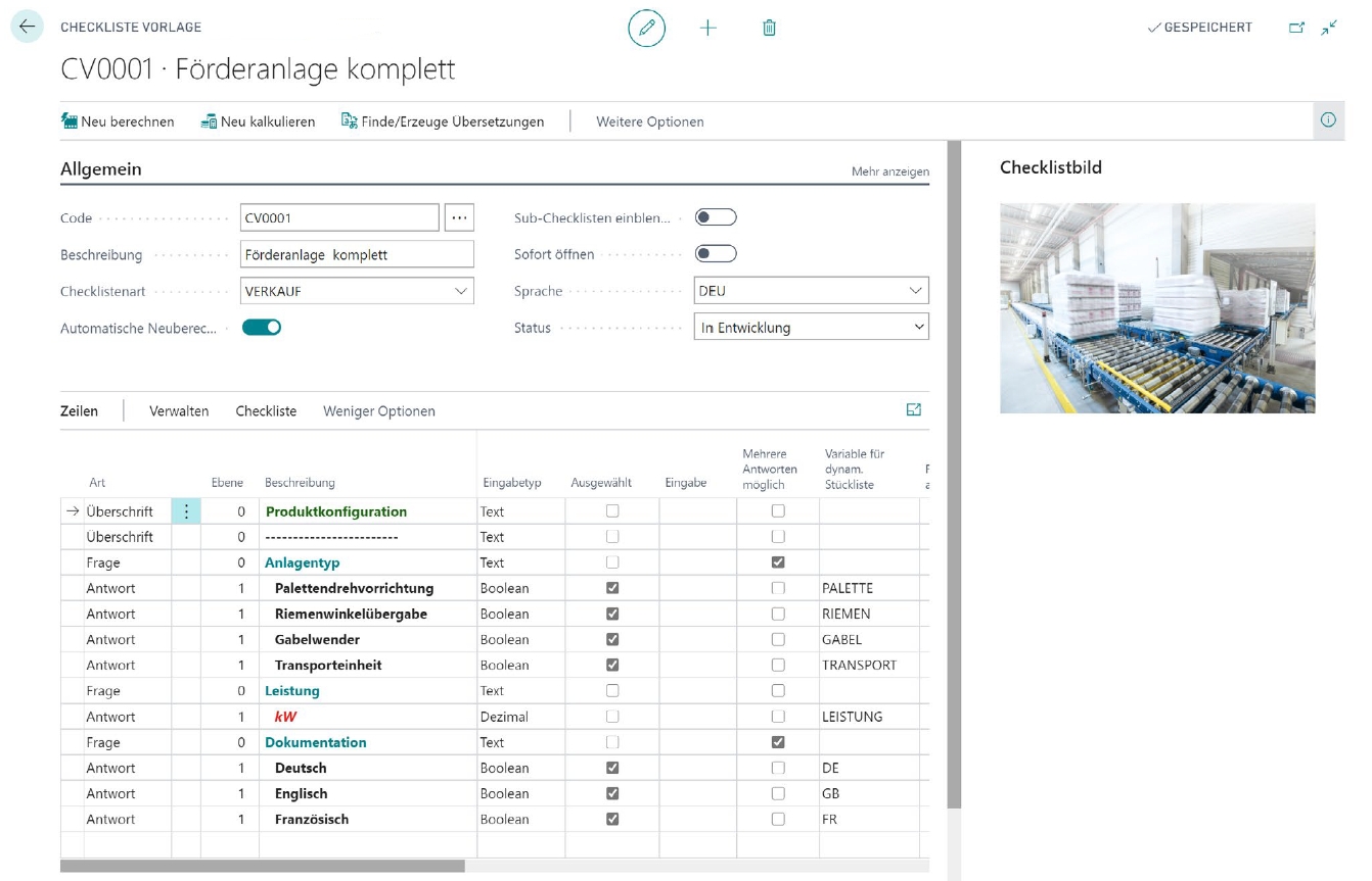 Über ein ausgefeiltes Checklistensystem können bereits die Vertriebsmitarbeiter während der Angebotserstellung beim Erfassen der Produktspezifikationen prüfen lassen, ob eine technische Machbarkeit gegeben ist und ggfs. Zusatzleistungen erforderlich sind. Das Checklistensystem umfasst zudem Funktionen zur Preisfindung, für Rabattstaffelungen sowie eine Gewichtskalkulation.