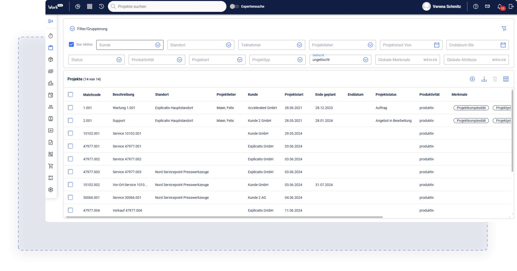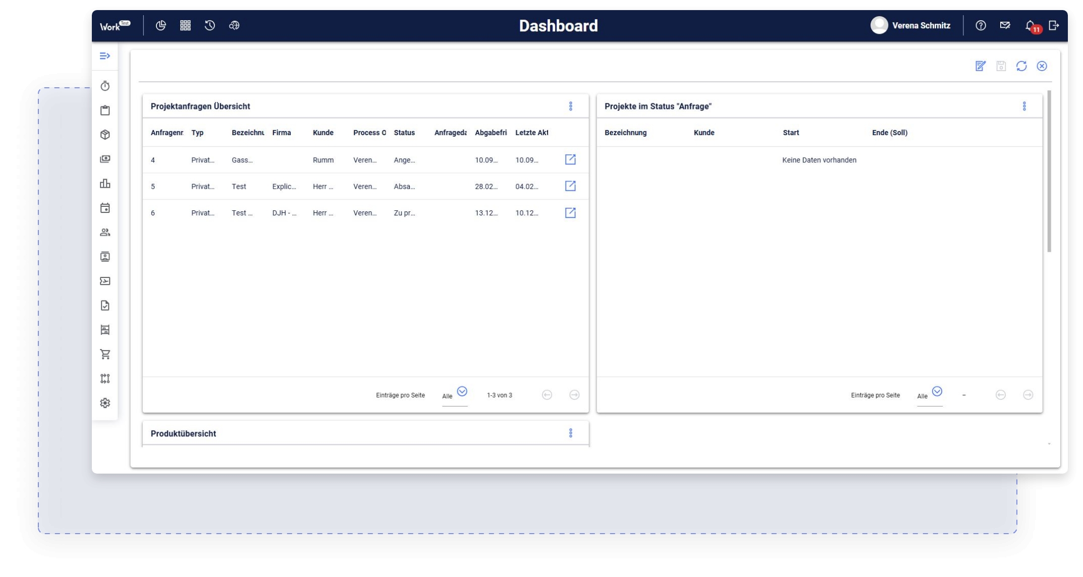 Mit dynamischen Dashboards können Sie auf einen Blick wichtige Informationen abrufen und gezielt analysieren. Sie erhalten anschaulich und transparent den Status Ihrer Projekte und Geschäftsprozesse in Echtzeit. Somit behalten Sie stets den Überblick und können schnell auf Veränderungen reagieren.