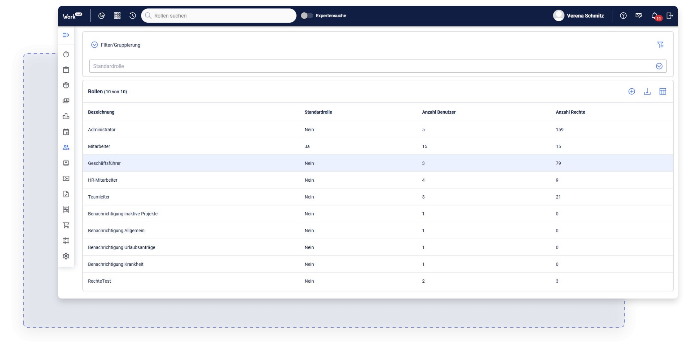 Jeder Anwender erhält rollen- oder benutzerbasierte Berechtigungen für genau die Menüpunkte und Informationen, die für seine Arbeit notwendig sind. Dadurch wird die Arbeitszeit effizient genutzt und es entsteht eine klare Struktur innerhalb der Anwendung.
