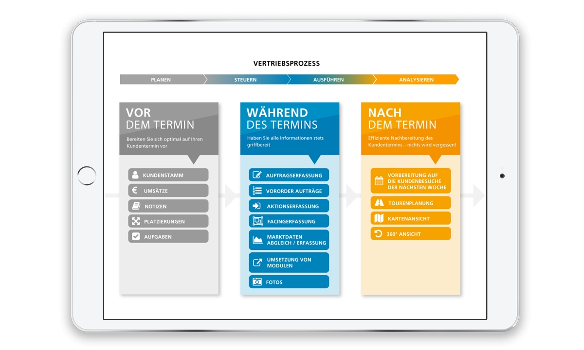 Durch strukturierte Informationen, mobile Auftragserfassung, Tourenplanung und Echtzeitdaten ermöglicht DeDeSales eine professionelle Kundenbetreuung und beschleunigt den Vertriebsprozess.