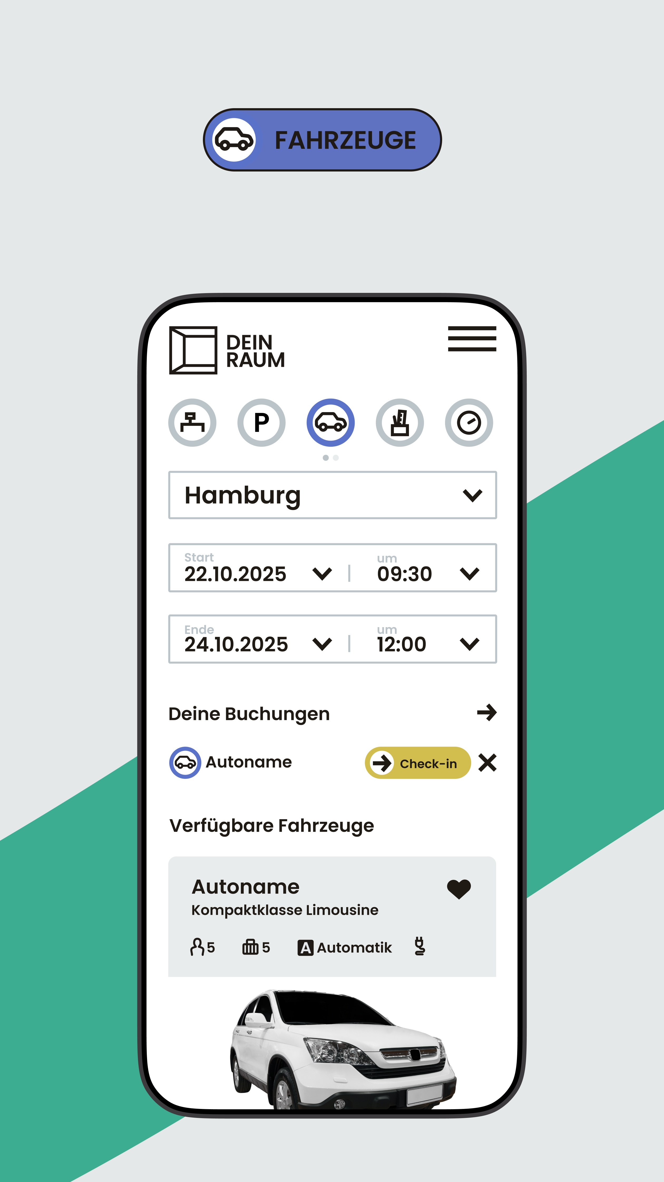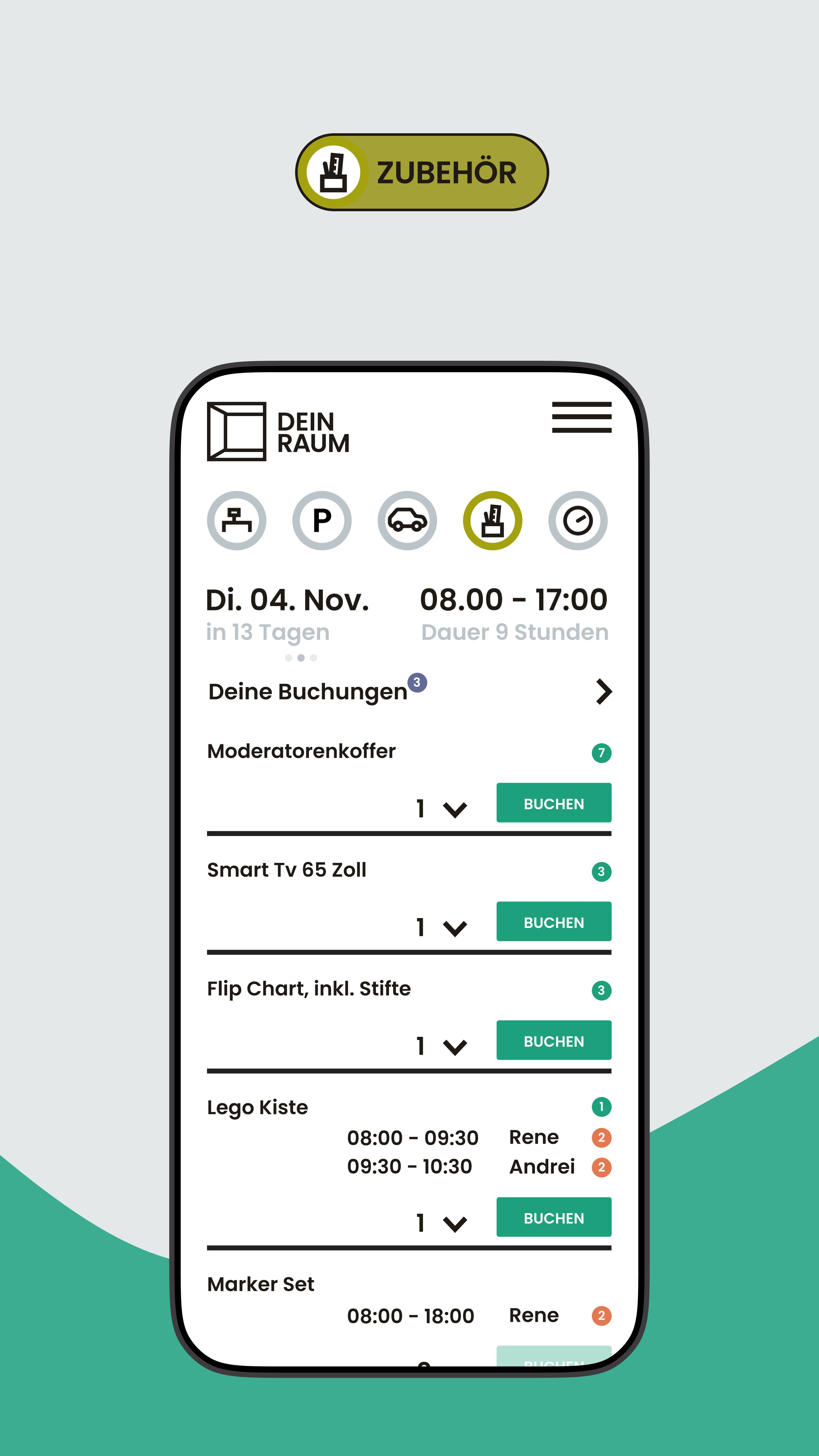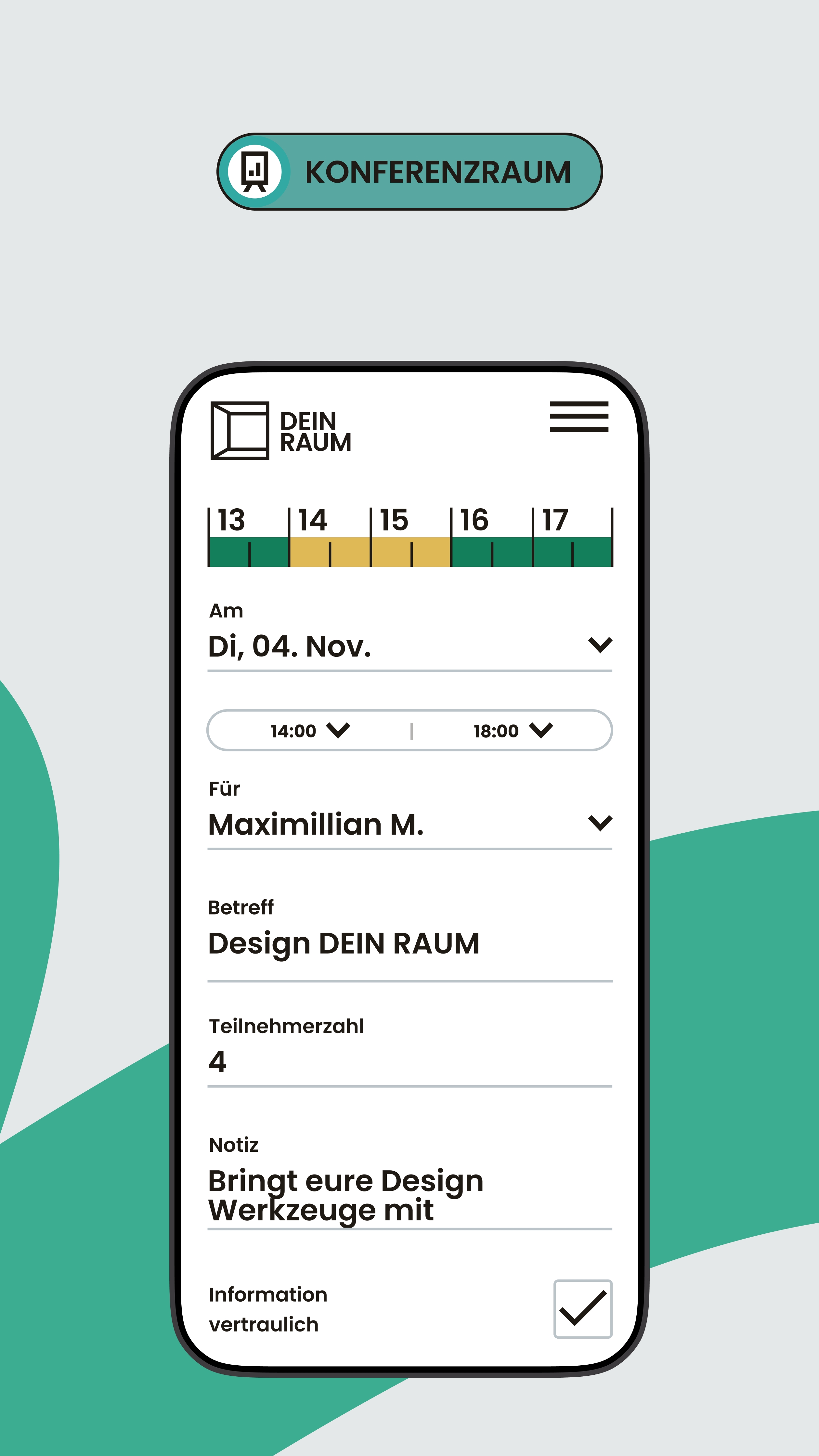 DEIN RAUM ist eine Desksharing-Software, mit der Sie hybride Arbeit strukturiert organisieren und flexible Arbeitsumgebungen zuverlässig steuern. Mitarbeitende buchen Arbeitsplätze, Konferenzräume oder Parkplätze digital – bequem über Smartphone, Tablet oder Desktop. Statt fester Zuordnungen schaffen Sie damit klare Regeln, Transparenz und eine planbare Anwesenheit im Büro, ohne die Flexibilität moderner Arbeitsmodelle einzuschränken.