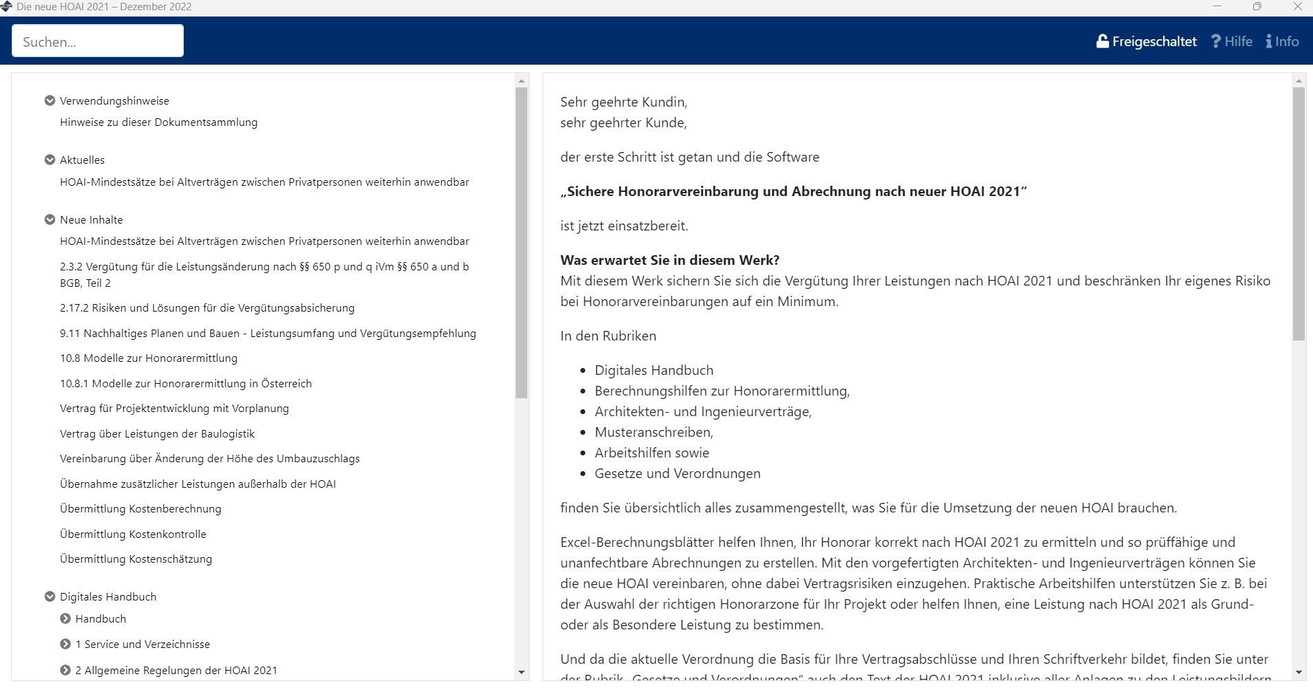 Die Anwendung, entwickelt von der Forum Verlag Herkert GmbH, informiert nicht nur über alle gesetzlichen Neuerungen, sondern gibt auch Schritt-für-Schritt-Anleitungen für die sichere Anwendung in der Praxis und kommentiert aktuelle Gerichtsentscheidungen. Es enthält außerdem Berechnungshilfen aktueller Architekten- und Ingenieurverträge sowie zahlreiche Musterschreiben zur rechtskonformen Umsetzung der HOAI 2021. Besonders vorteilhaft an diesem digitalen Praxisratgeber ist, dass er eine Online-Version des vollständigen Handbuchs enthält, sowie herunterladbare und gebrauchsfertige Mustervorlagen, Arbeitshilfen und Checklisten. Das macht den Zugang zu wichtigen Informationen und Hilfsmitteln noch einfacher und bequemer.