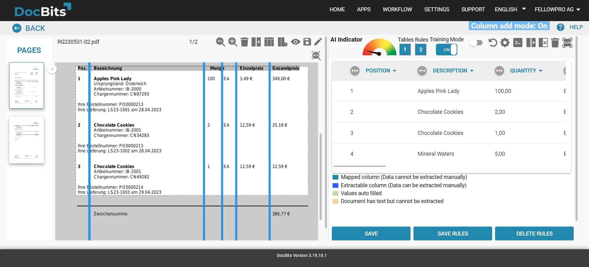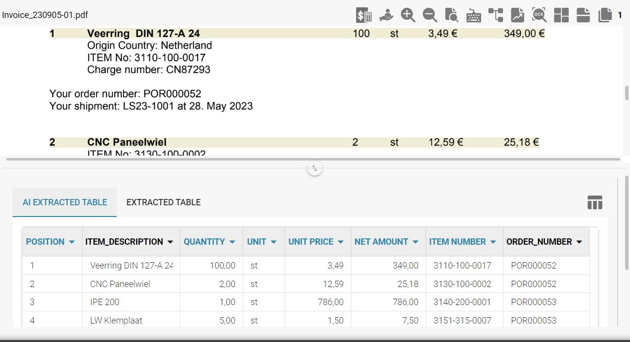 Es können nicht nur einfache Kopfdaten eines Dokuments erfasst werden, sondern auch komplizierte Strukturen wie Tabellen. Dabei lassen sich selbstverständlich nicht nur Rechnungen verarbeiten, sondern jede Art von Dokumenten wie zum Beispiel auch Frachtbriefe, Mitgliedsanträge, medizinische Rezepte und so weiter.