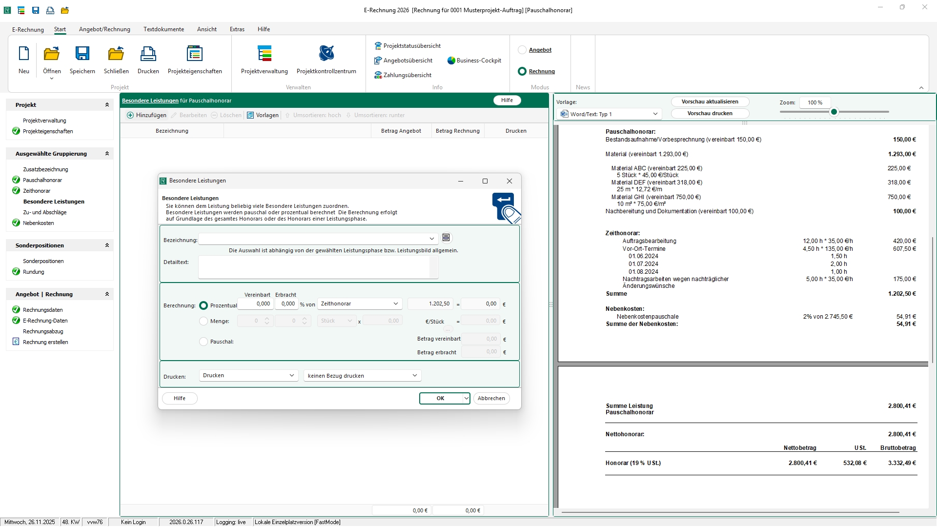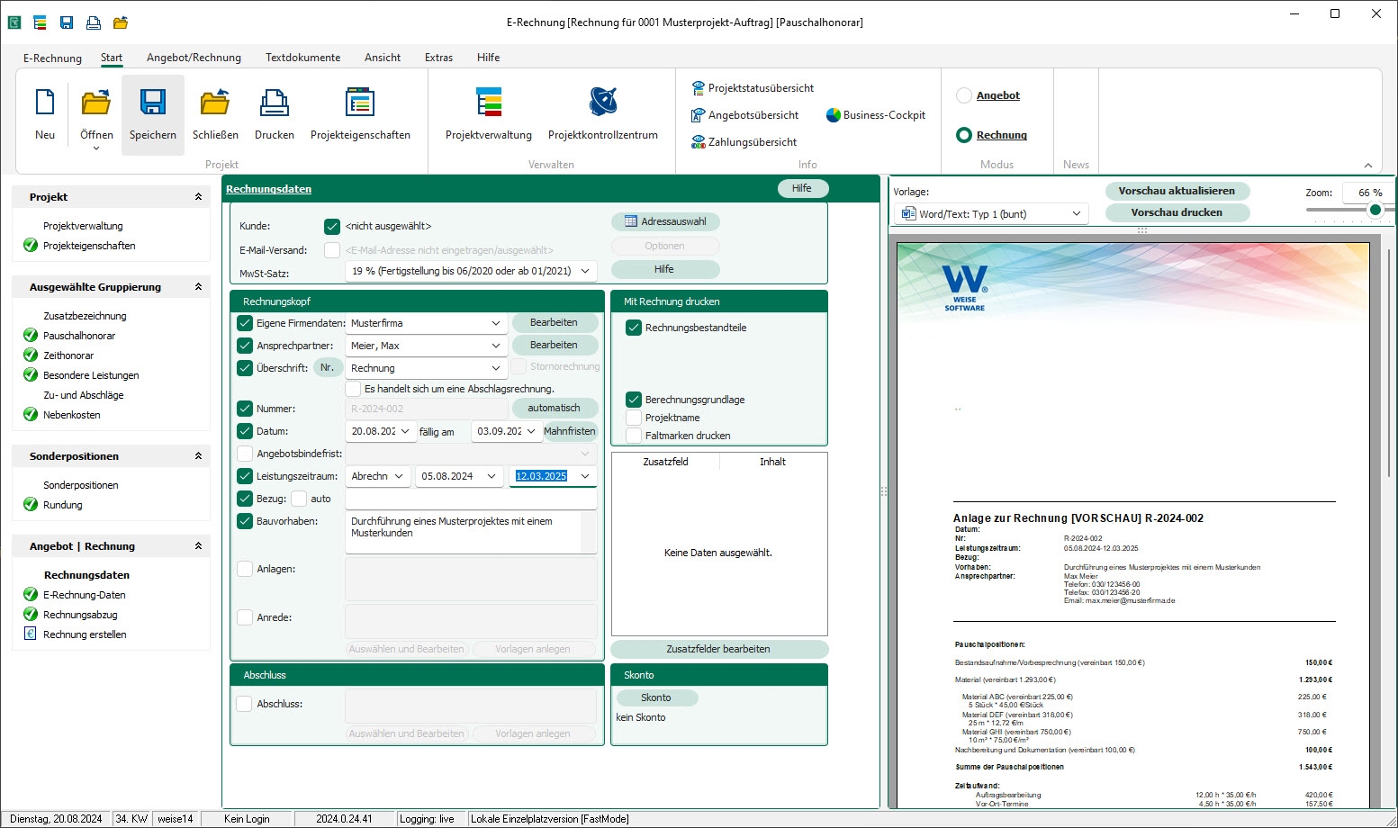 Ermöglicht eine grafische Übersicht über alle relevanten Rechnungs- und Angebotsdaten sowie die Verwaltung von Zahlungseingängen und Projektstrukturen.