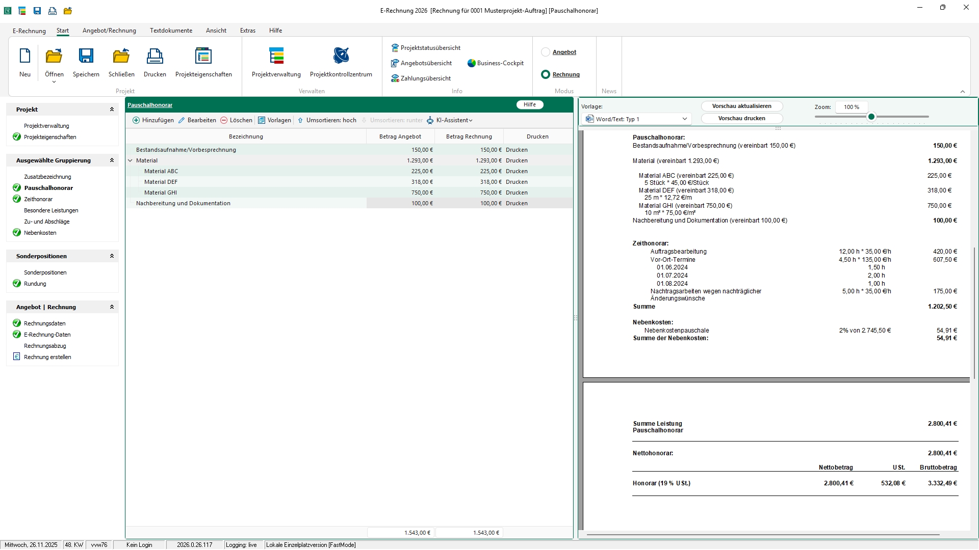Dieser hilft Ihnen, Rechnungen und Angebote effizient zu erstellen, indem er Auftragspositionen untergliedert, Aufwandsschätzungen bietet und Textvorschläge generiert.