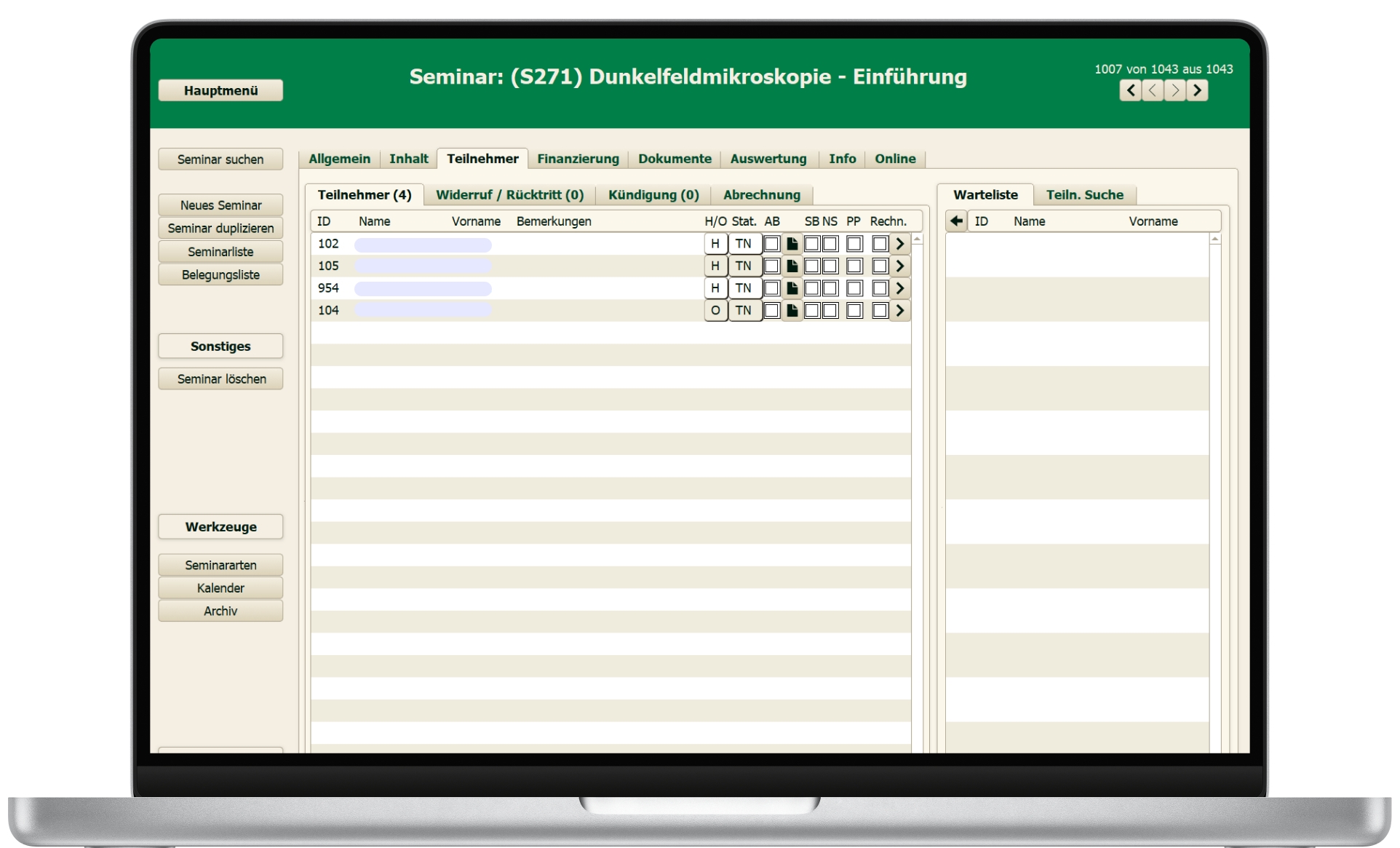 Planen Sie Ihre Seminare und Kurse in Zukunft effektiv und zeitsparend. Die Software bietet alle dazu benötigten Prozesse bis hin zur Faktura mit integriertem Mahnwesen an. Die edunamix ist in verschiedenen Modulvarianten anwendbar.