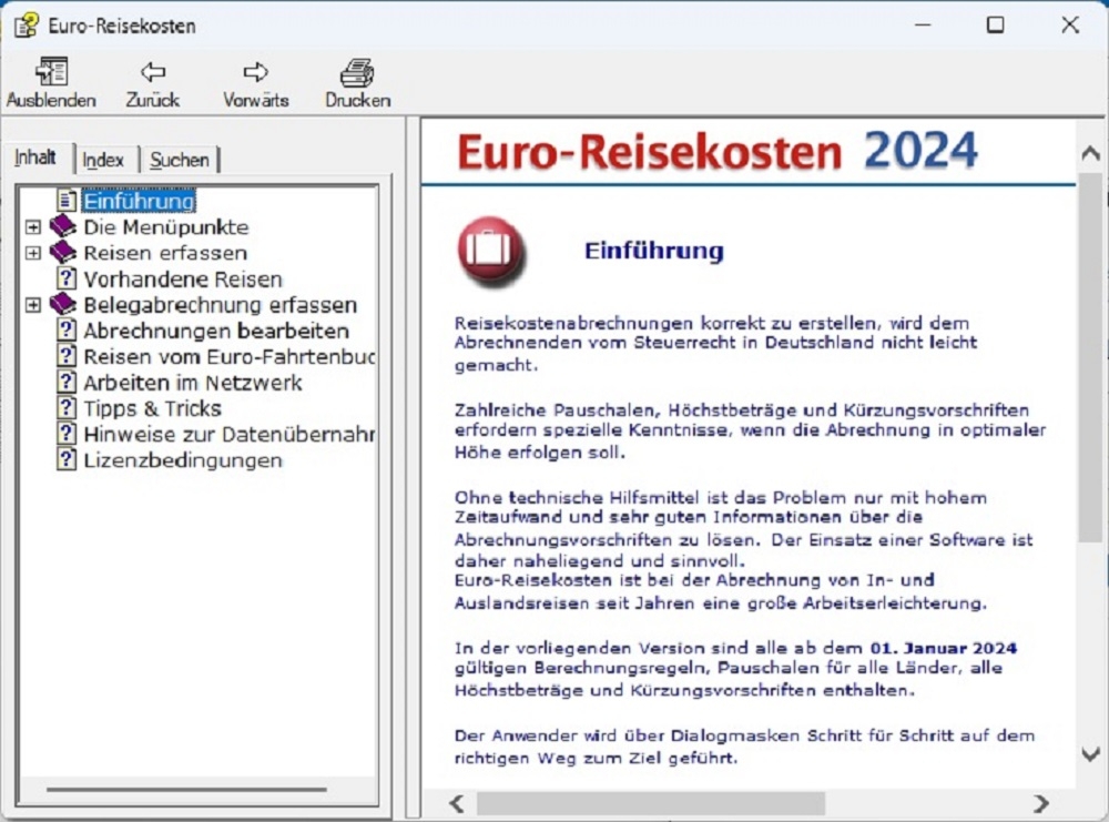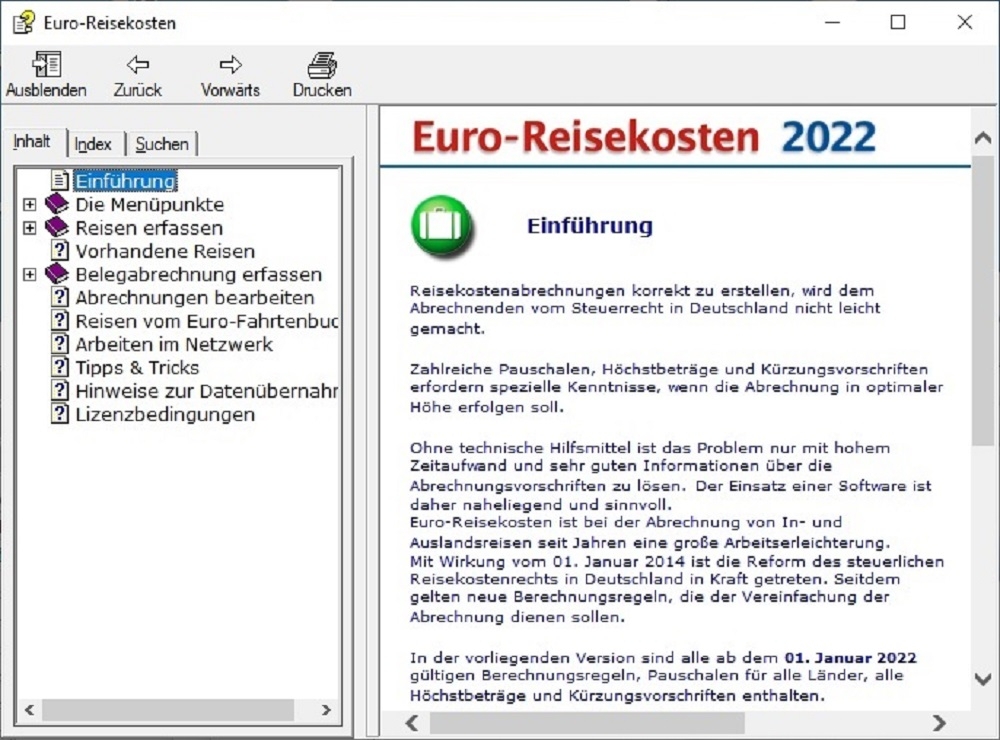 Die Software Euro-Reisekosten ist für die Verwaltung von geschäftlichen Reisen im In- und Ausland konzipiert. Die Lösung bildet die aktuellen steuerlich relevanten Eckdaten wie beispielsweise Pauschalen für Verpflegung und Übernachtungen für sämtliche Länder weltweit ab. Die Software kann für beliebig viele Reisende genutzt werden.