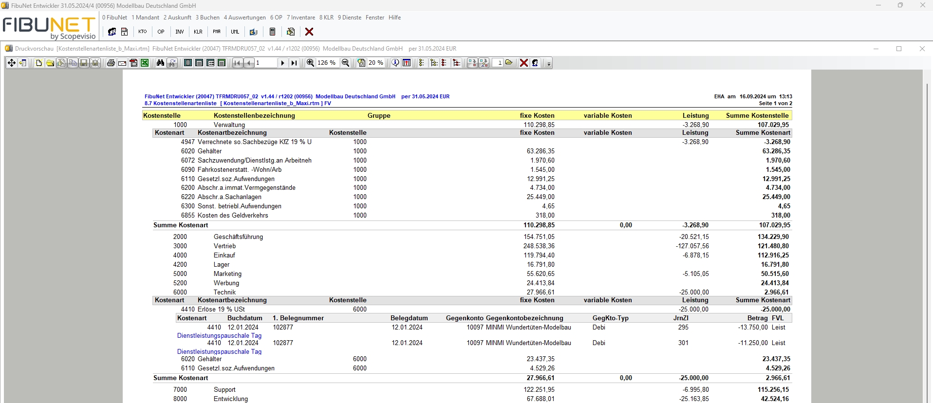 Der Funktionsumfang der FibuNet-Kostenrechnung umfasst auszugsweise:
