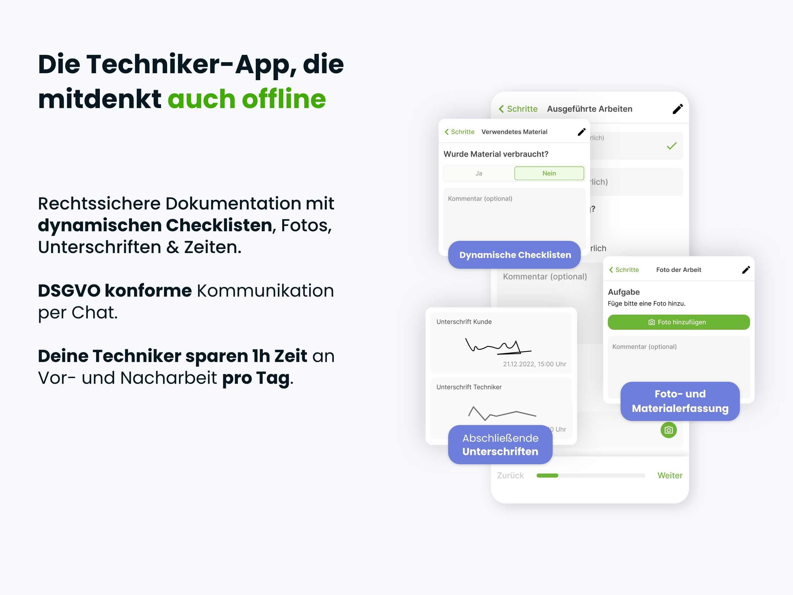Als einziges FSM-System vereint mfr® Prozessexpertise, dynamische Checklisten, integriertes Projektmanagement und KI-gestützte Einsatzplanung und Kundeneinbindung. Mit mfr® hast du ein System, das Serviceprozesse intelligent automatisiert und zentral steuerbar macht.