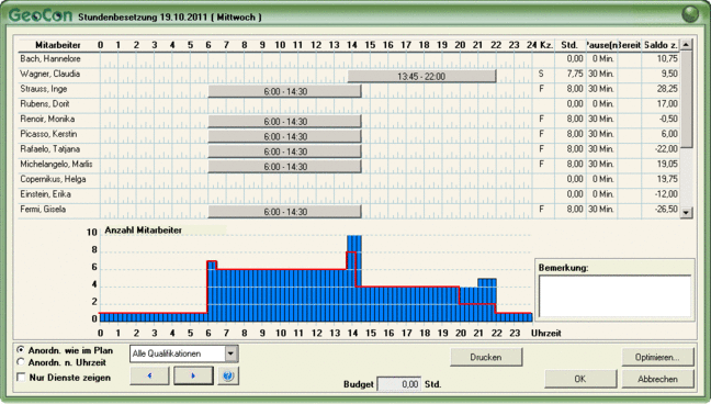 Die branchenführende Steuerung von Mitarbeitereinsätzen berücksichtigt immer den erforderlichen Personalbedarf gemäß PeBeM. Flexibel und selbstoptimierend.