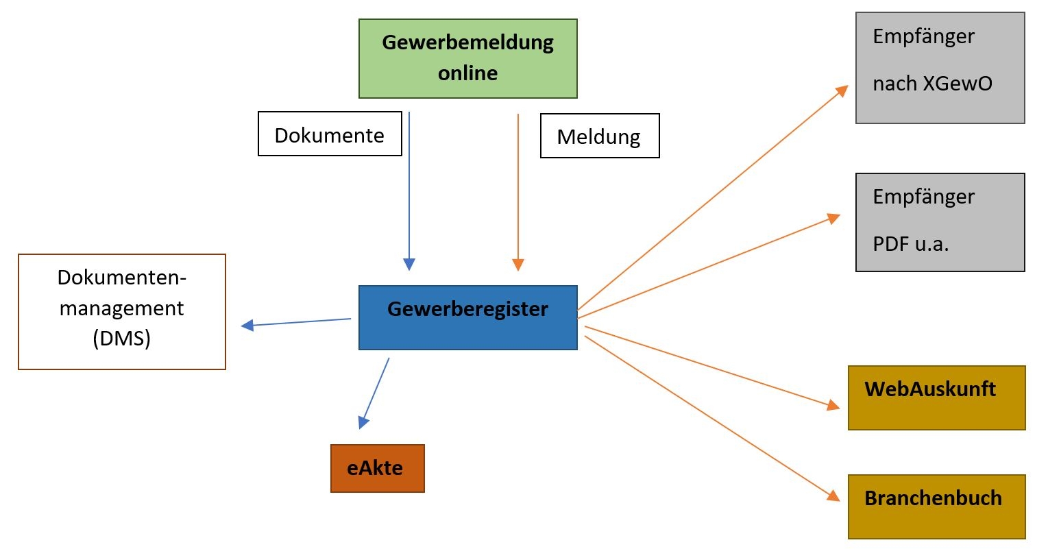 - Datenaustausch zur papierlosen Datenweitergabe der Meldungen über die Schnittstellen XML (DatML/RAW), xGewerbeanzeige oder PDF-Datei