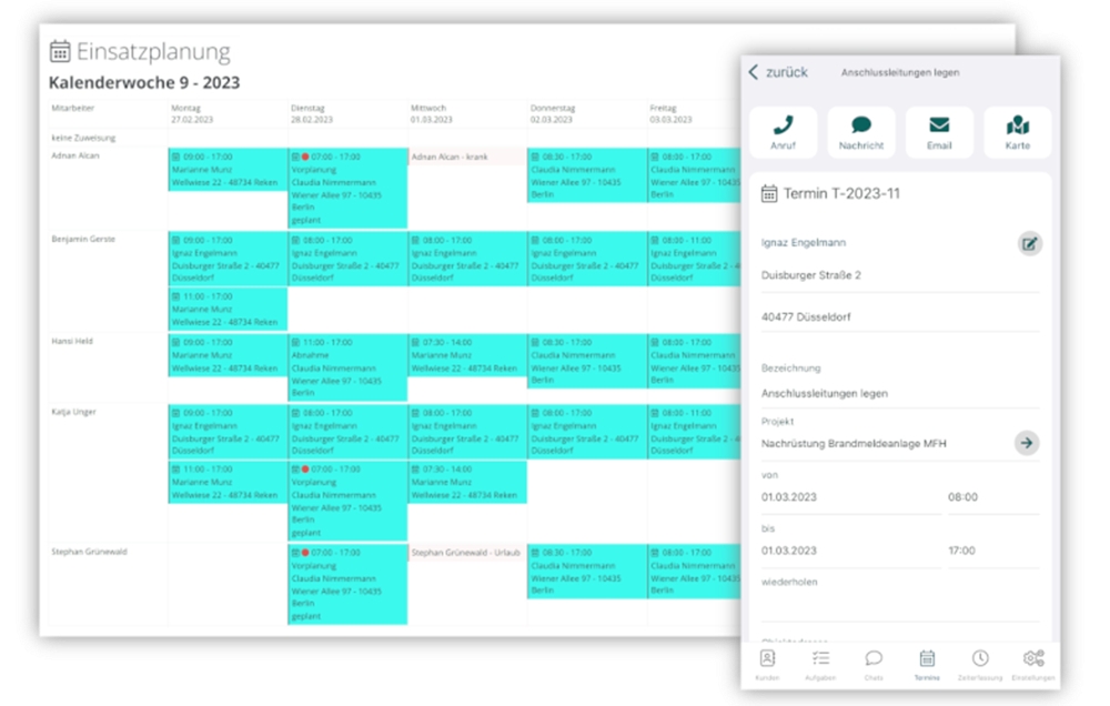 Unsere Einsatzplanung hilft Ihnen, Aufträge pünktlich und effizient auszuführen.