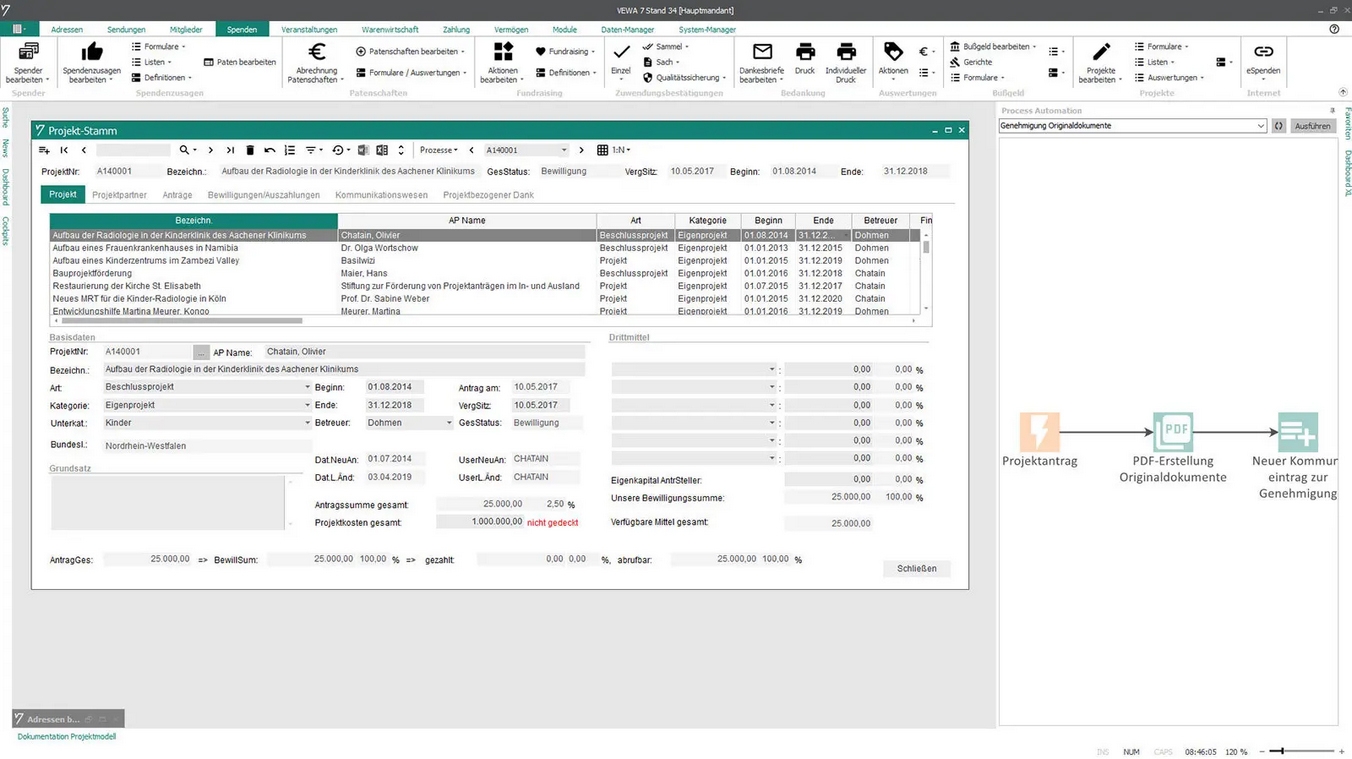 GRÜN VEWA Spendenverwaltung unterstützt Sie leistungsstark und komfortabel beim Fundraising und Ihren Spendenprojekten und dient gleichzeitig als zentrales ERP- und CRM-System Ihrer Organisation.