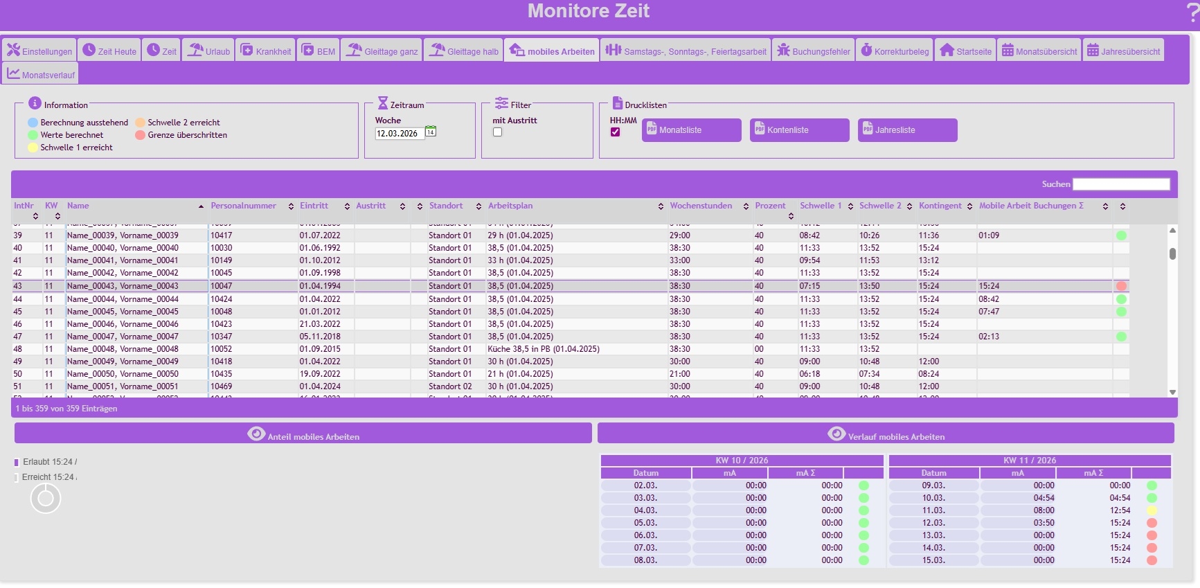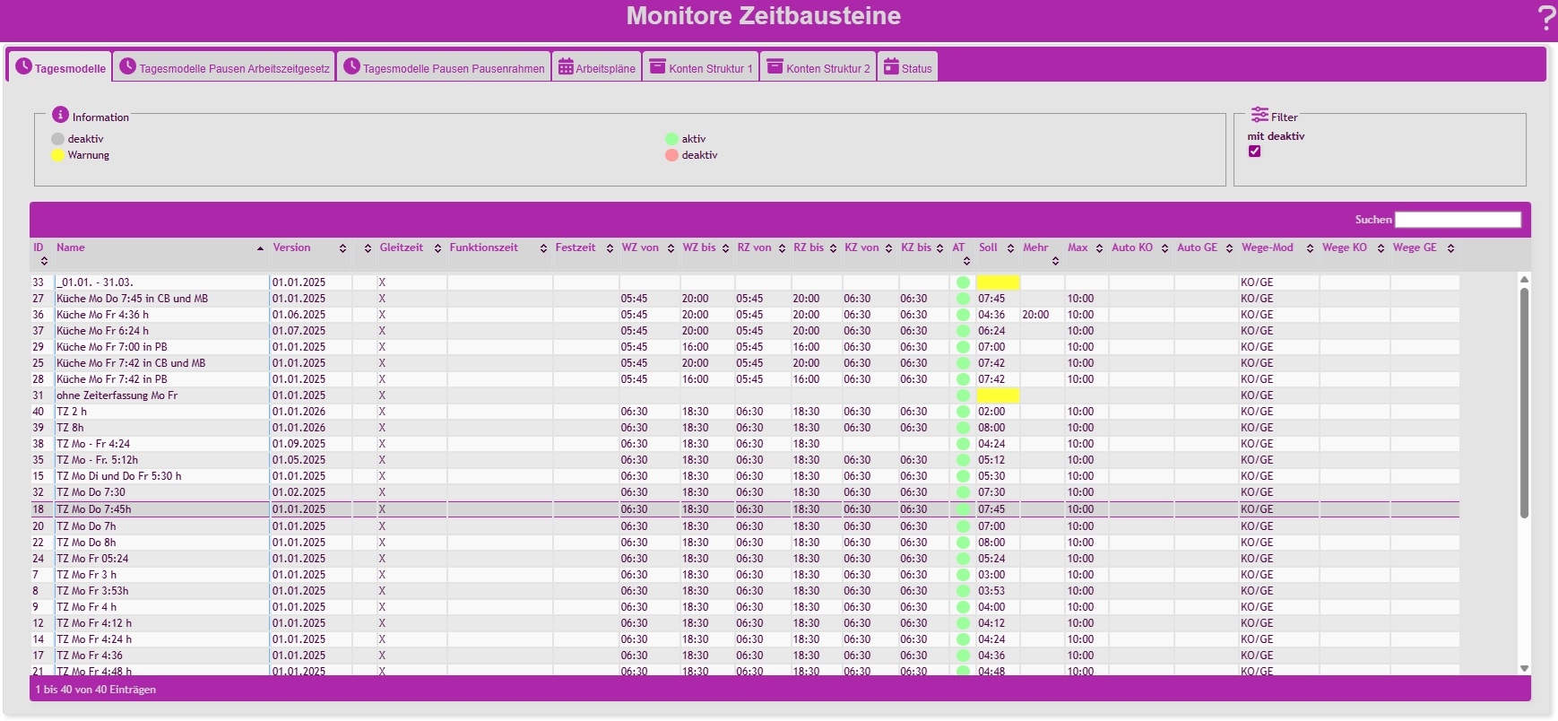 Frei definierbare Zeitmodelle je Mitarbeiter oder Mitarbeitergruppe