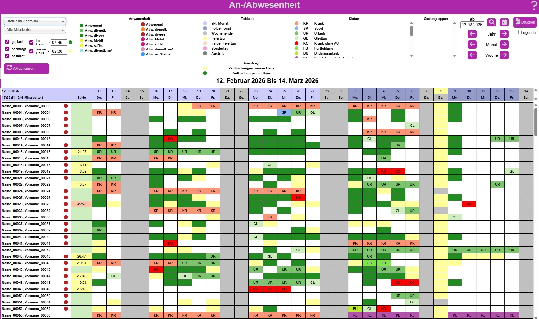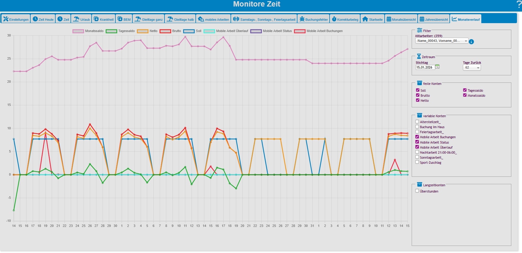 Abbildung von Pausen, Urlaub, Krankheit, Dienstreise und Zeitsalden