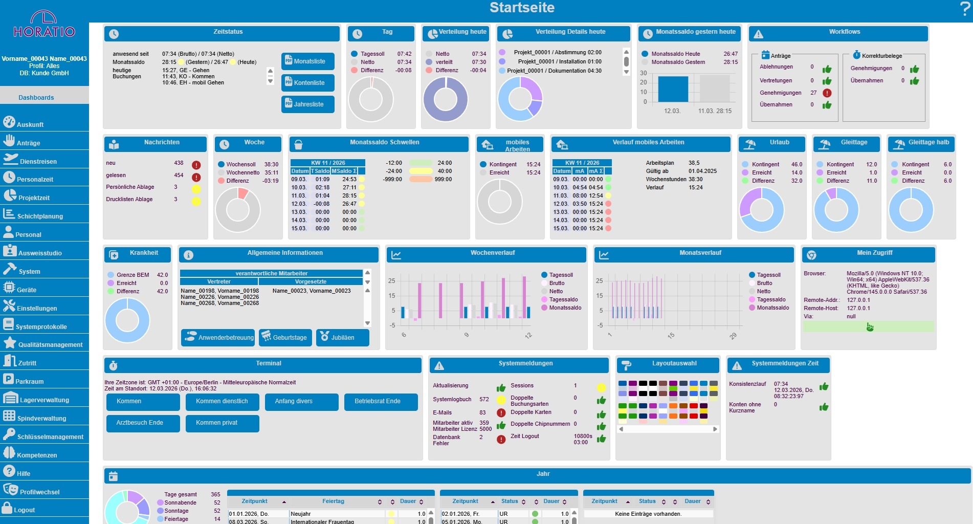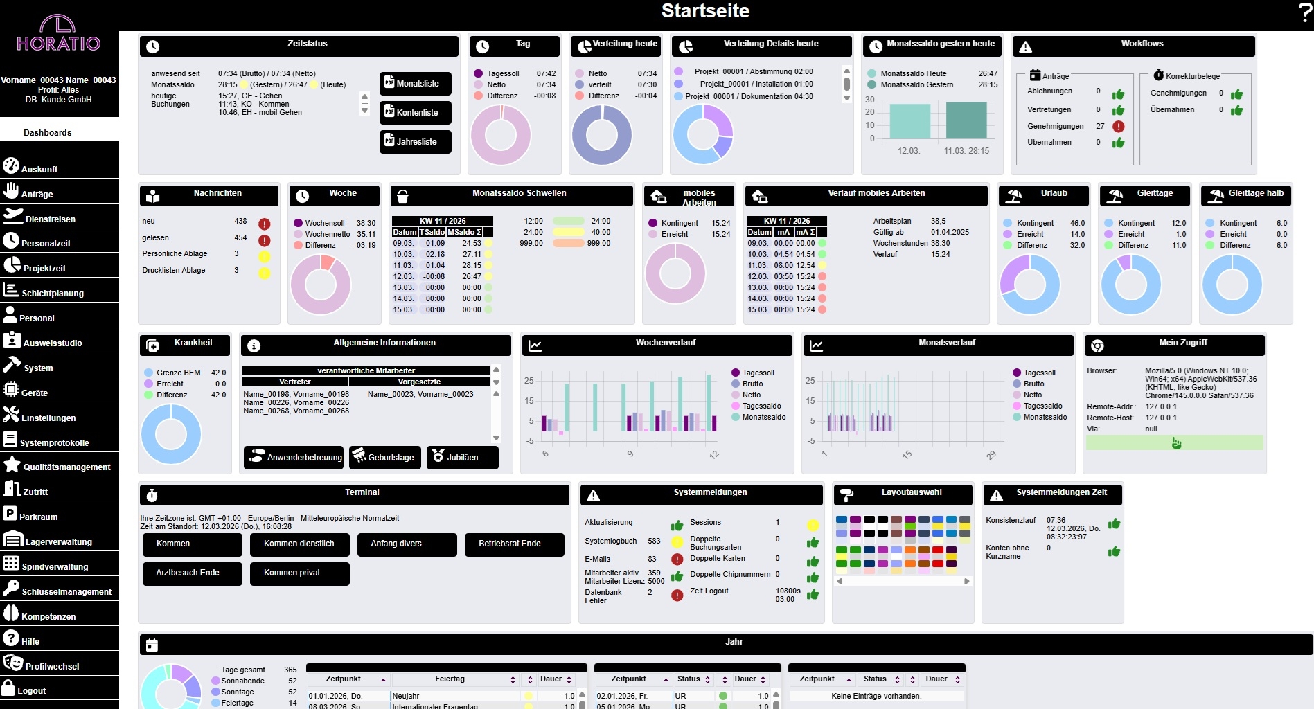 Horatio ist eine integrierte B2B-Lösung für Zutrittskontrolle, Zeiterfassung und angrenzende Sicherheits- sowie Workflow-Prozesse. Die Software ermöglicht es, Zugänge zu Gebäuden und sensiblen Bereichen zentral zu steuern, Arbeitszeiten digital zu erfassen und Genehmigungsabläufe wie Urlaub oder Dienstreisen effizient abzubilden.