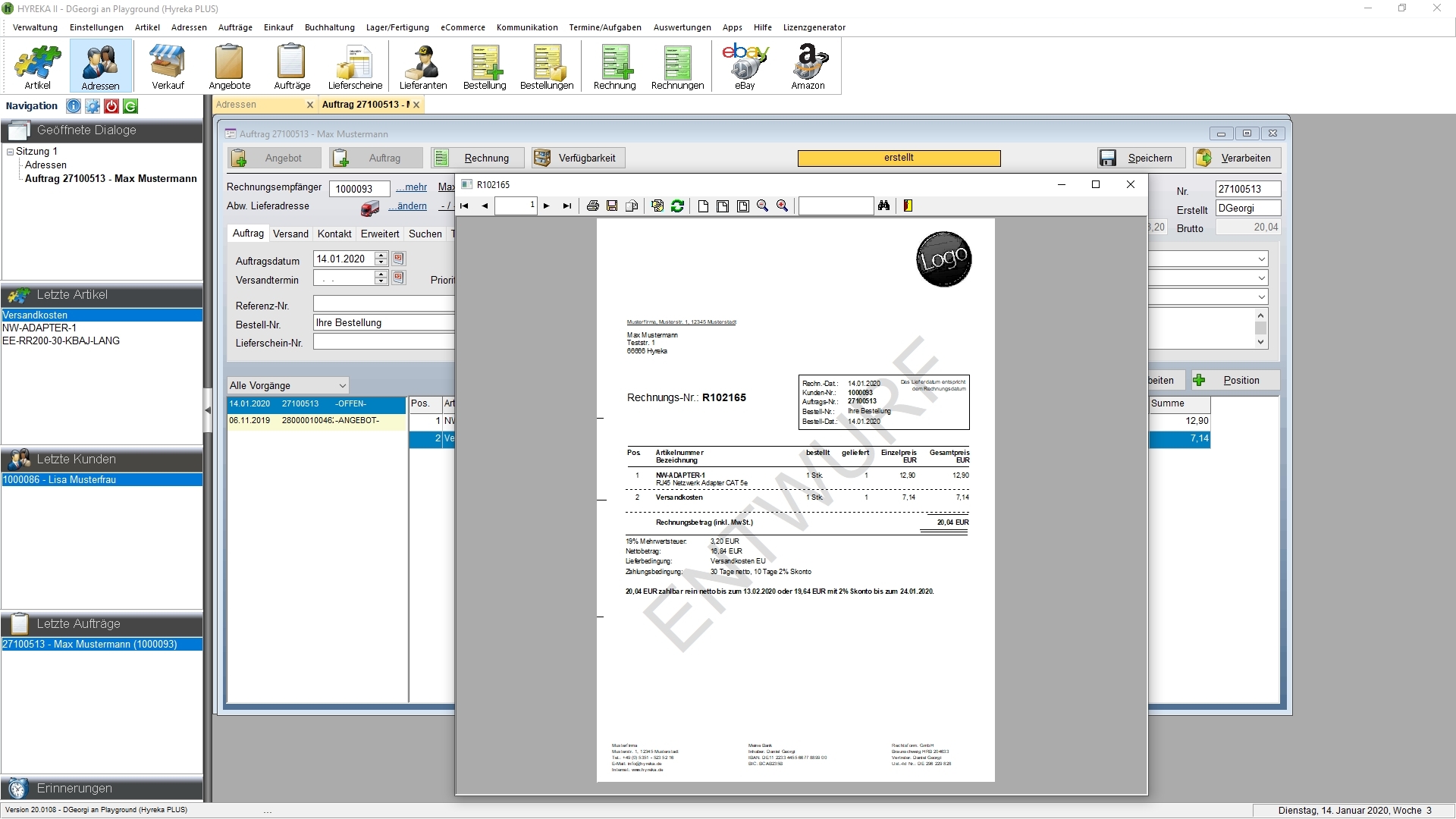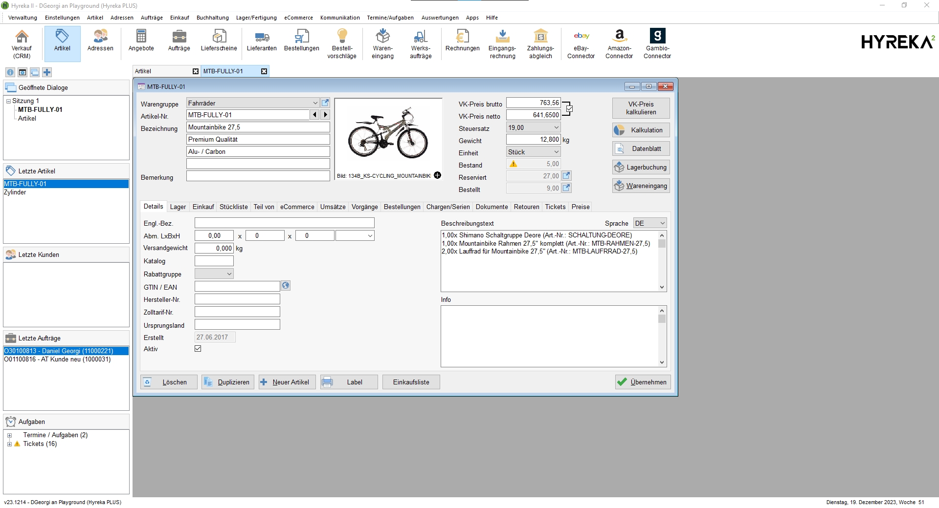 Die Hyreka Warenwirtschaft unterstützt Unternehmen, Firmen aber auch kleine Startups in der Verwaltung und Steuerung des alltäglichen Betriebs. Die Software ist für KMU, Versandhändler, Handwerksbetriebe und Selbstständige konzipiert.