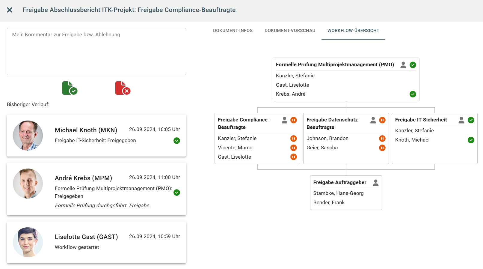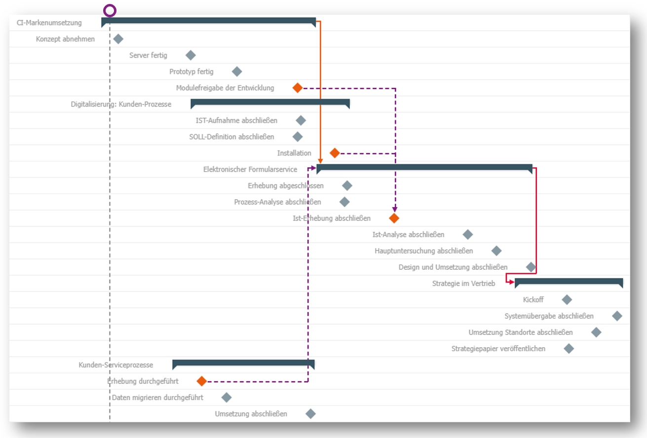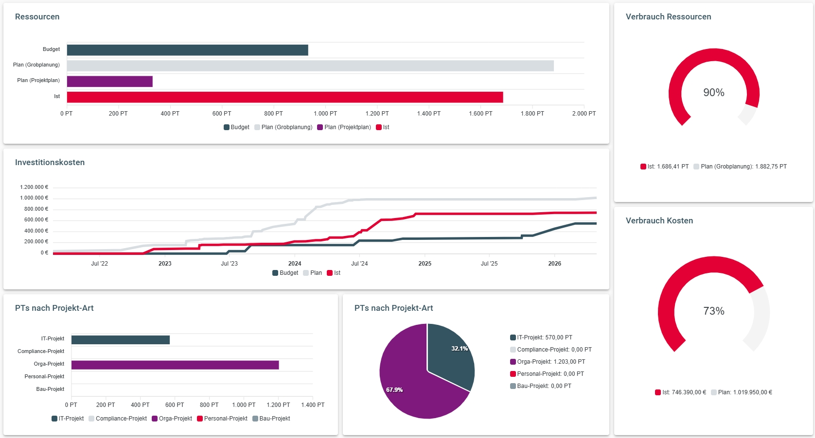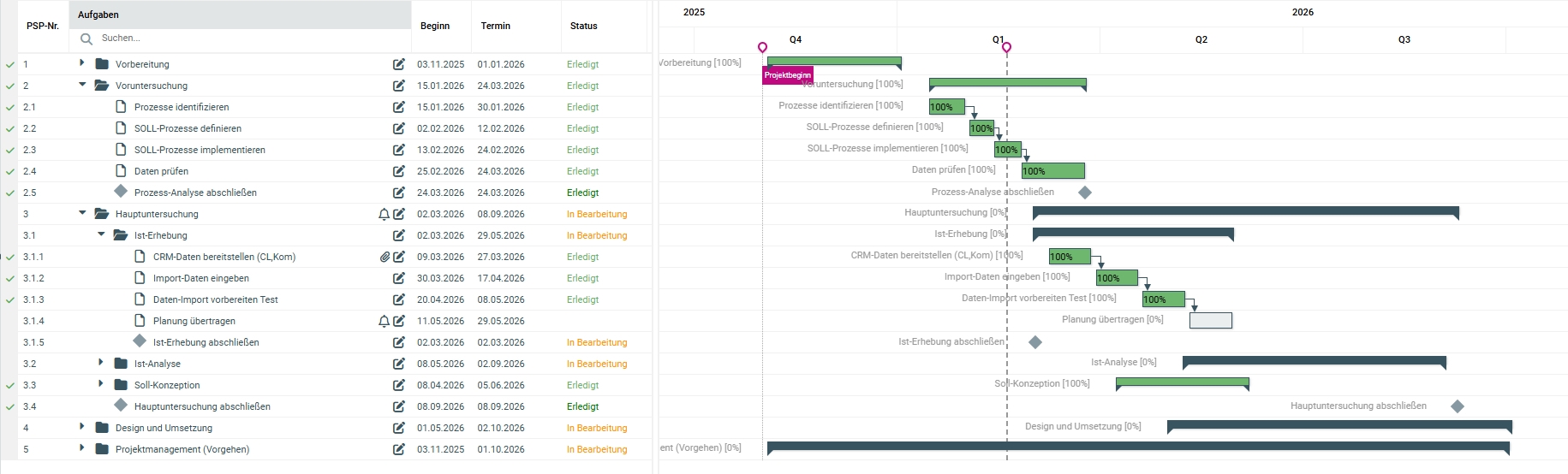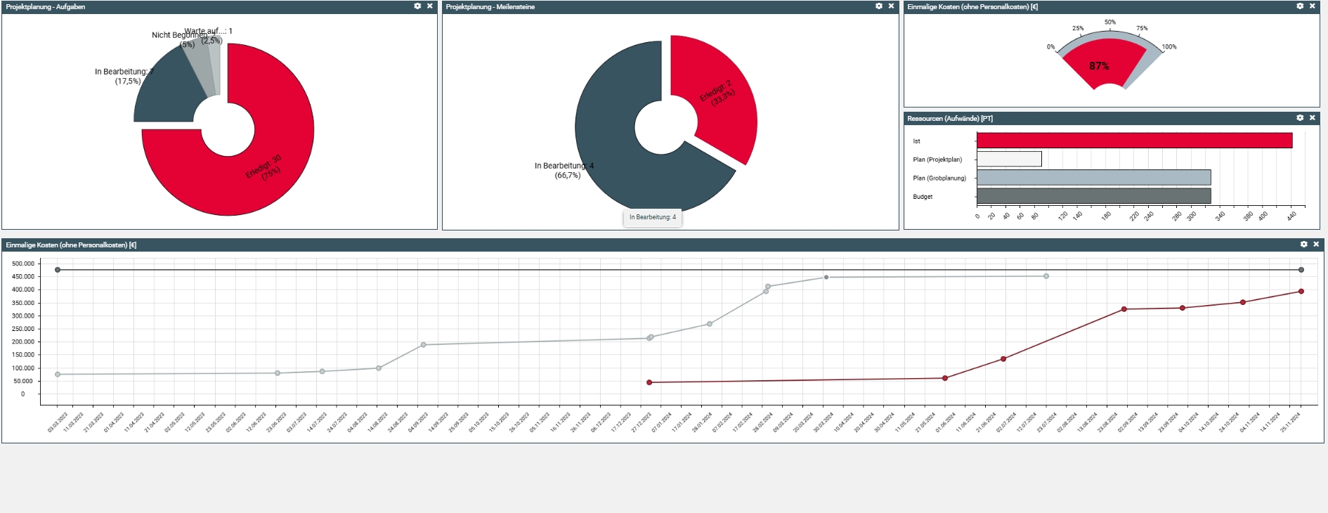 Ja. Über individuell konfigurierbare Berichte und definierbarer Eskalationsstufen, wird die Projektüberwachung unterstützt. Darüber hinaus kann auf Multiprojektebene über ein integrierten Berichtgenerator Auswertungen schnell und einfach erzeugt werden.