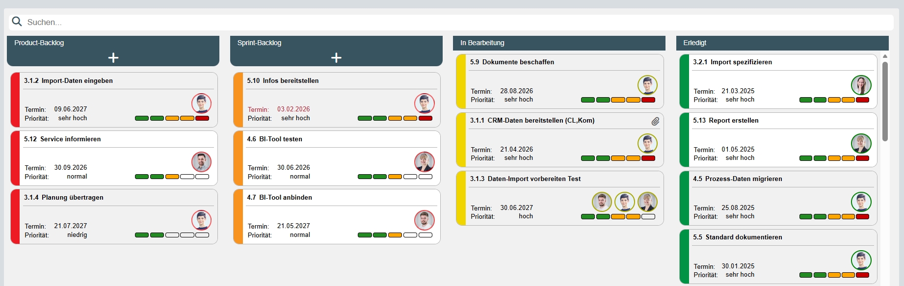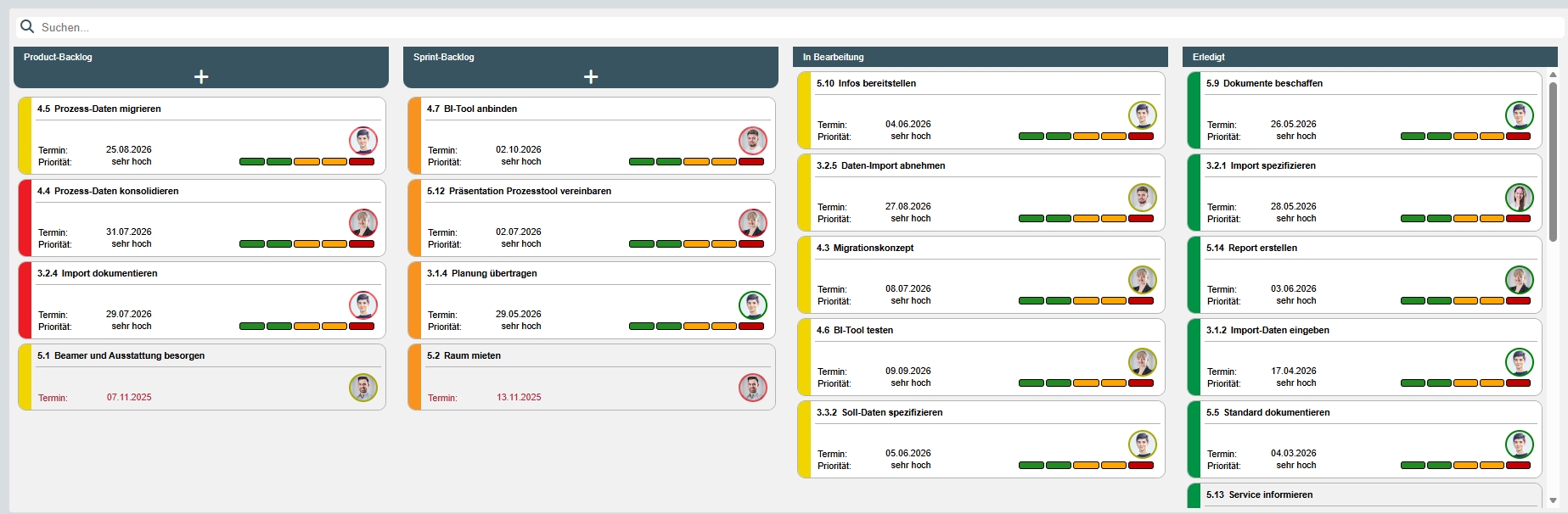 Unabhängig von den Unterschieden zwischen Ihren Projekten, dem Planungsumfang, der gewählten Methode (klassische Planung mit Gantt-Diagramm oder agiles Vorgehen mit Kanban-Boards) unterstützt unsere Software Ihren spezifischen Projektmanagement-Prozess. Von der Projektentstehung über die Planung und Durchführung bis zum Abschluss und der übergreifenden Steuerung im Multiprojektmanagement.