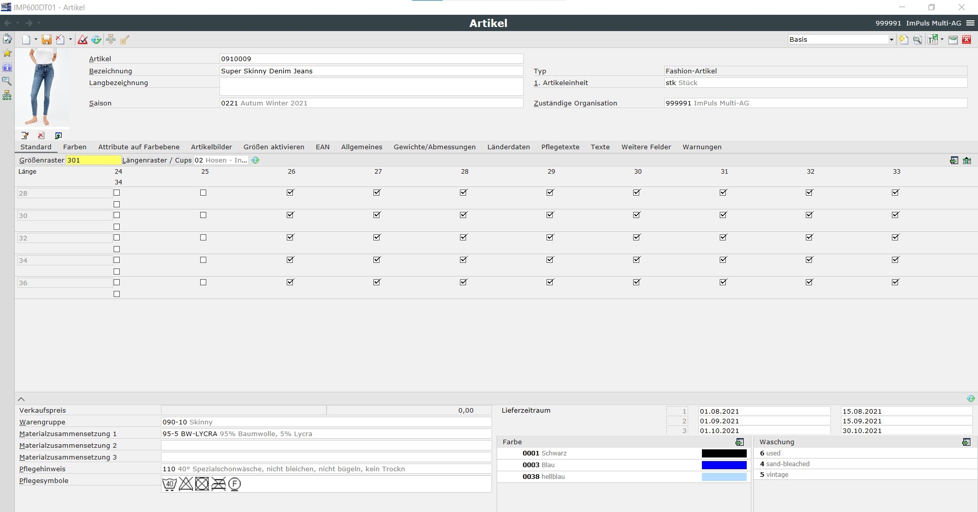 Konzipiert ist ImPuls fashion XL für den Einsatz im Handel (Groß- und Filialhandel) und in der Produktion. Umfangreiche betriebswirtschaftliche Funktionen sind bereits integriert: