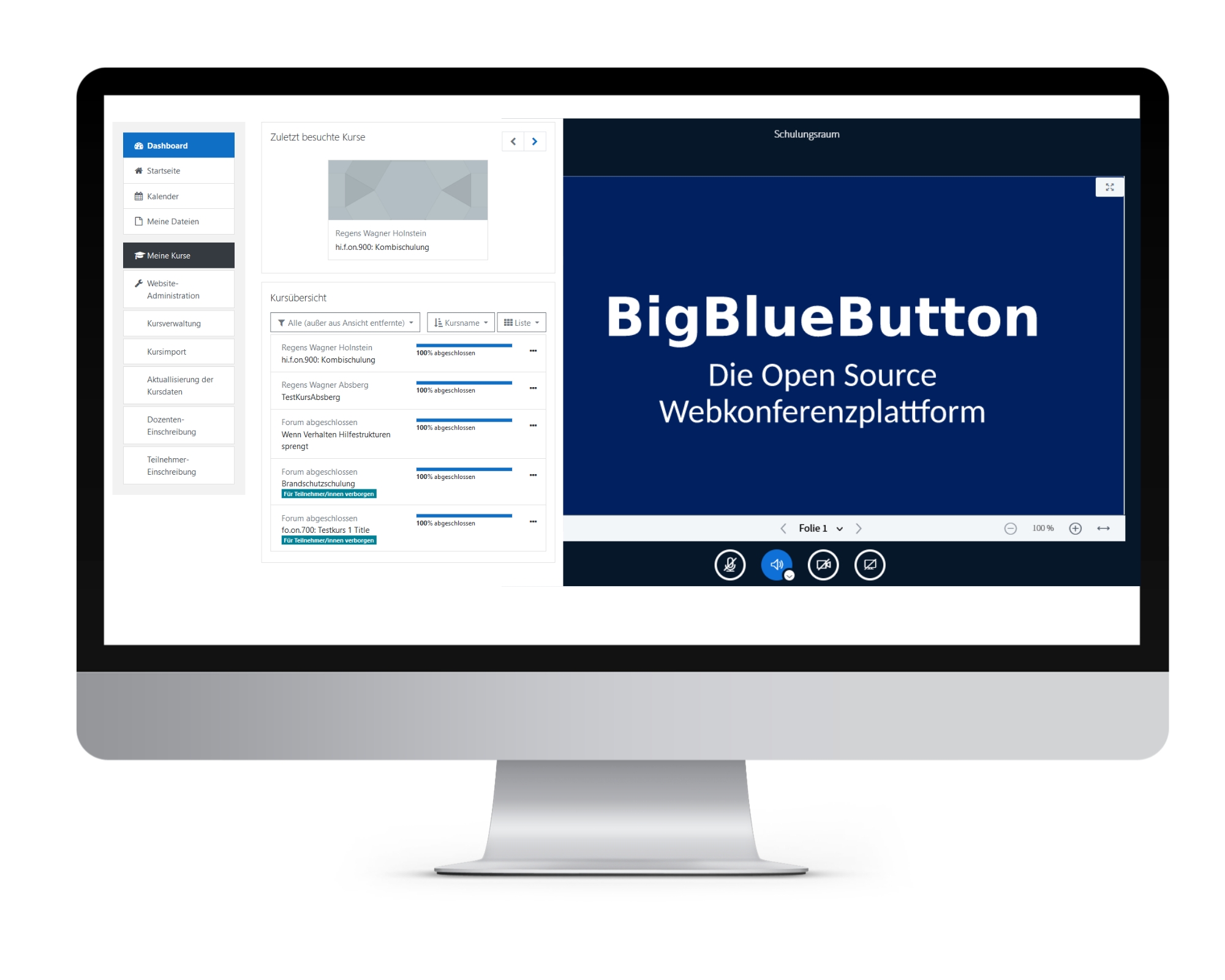 Für die Durchführung von Web-Seminaren und Online-Veranstaltungen integrieren wir die Open-Source-Software BigBlueButton. Diese globale Plattform verfügt über langjährige Praxiserfahrung und beeindruckende Funktionen wie: