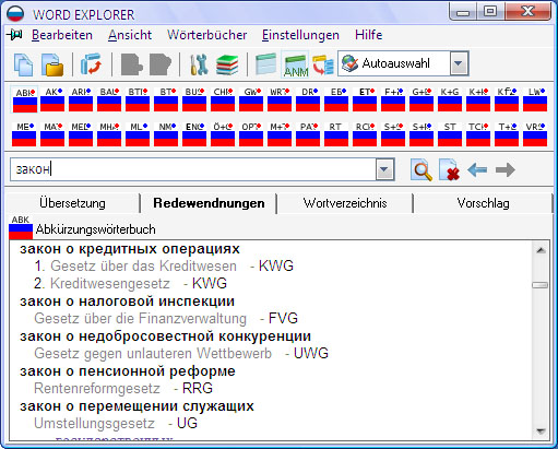 Hier ein Screenshot-Beispiel zu Jourist Abkürzungswörterbuch Russisch-Deutsch, Deutsch-Russisch aus der Reihe :
