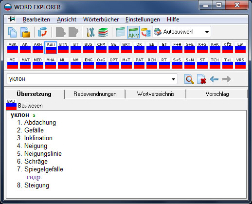 Hier ein Screenshot-Beispiel zu Jourist Fachwörterbuch Bauwesen Russisch-Deutsch, Deutsch-Russisch aus der Reihe: