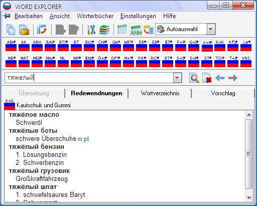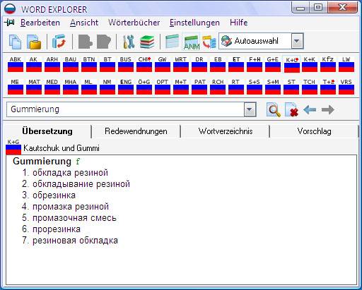 Hier ein Screenshot-Beispiel zu Jourist Fachwörterbuch Kautschuk und Gummi Russisch-Deutsch, Deutsch-Russisch aus der Reihe :