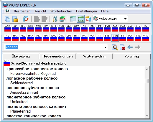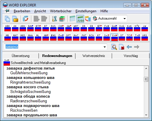 Hier ein Screenshot-Beispiel zu Jourist Fachwörterbuch Schweißtechnik und Metallverarbeitung Russisch-Deutsch, Deutsch-Russisch aus der Reihe: