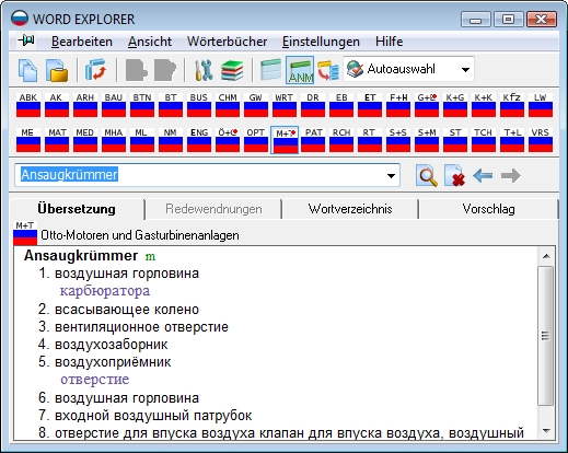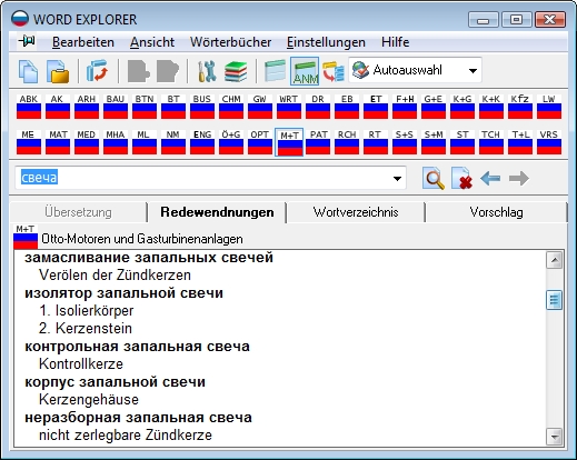 Hier ein Screenshot-Beispiel zu Jourist Fachwörterbuch Verbrennungsmotoren und Gasturbinenanlagen Russisch-Deutsch, Deutsch-Russisch aus der Reihe: